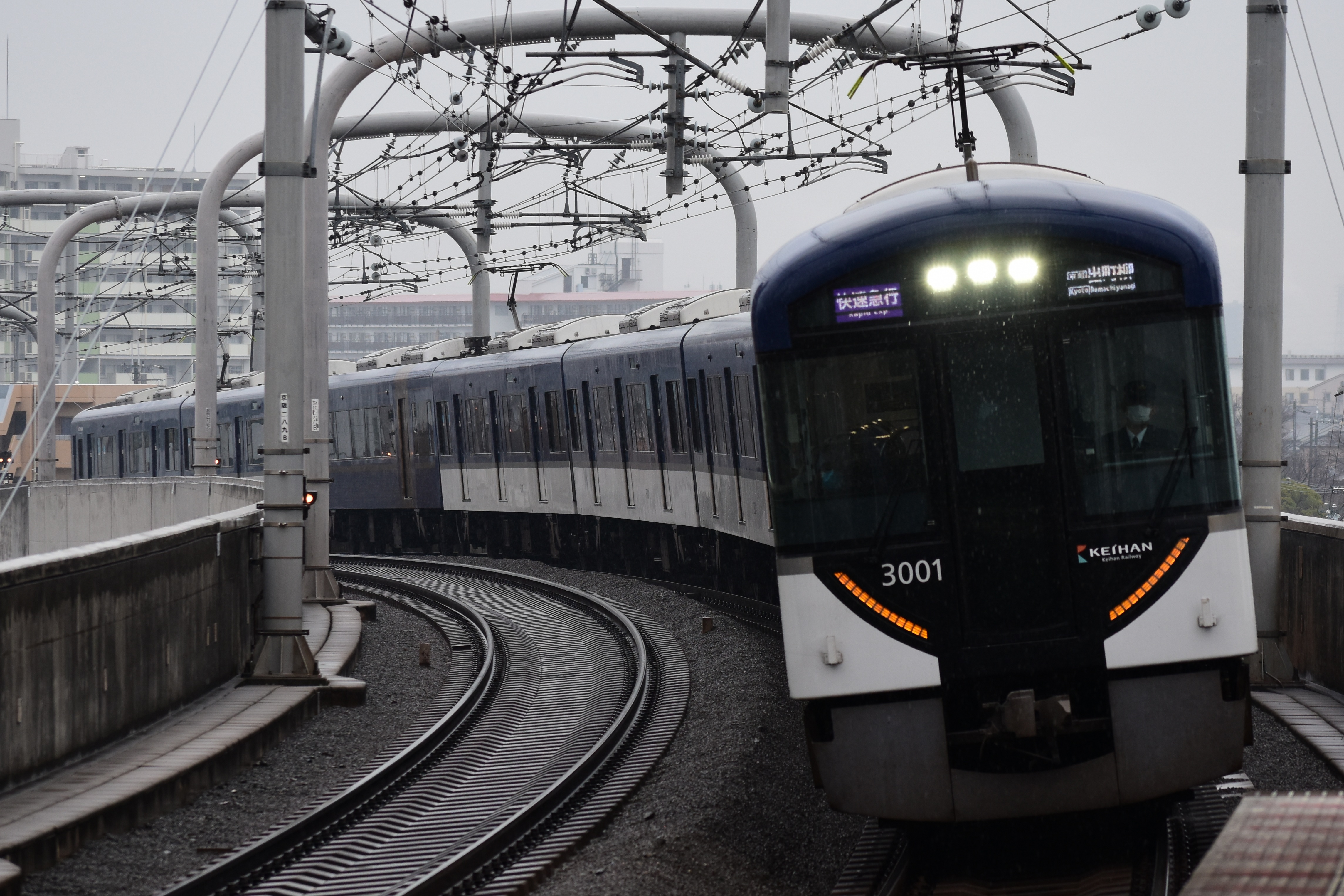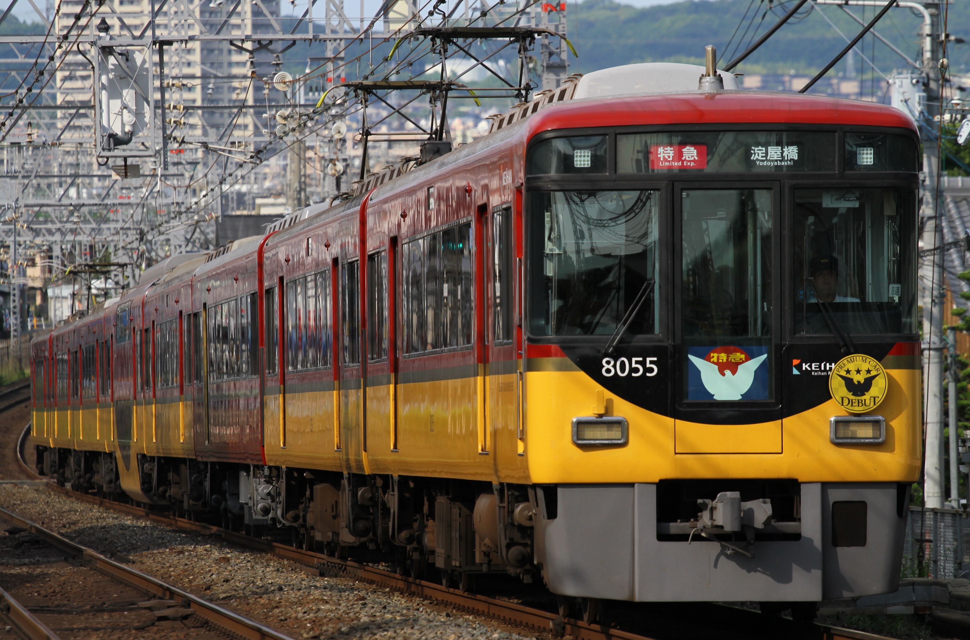 일본에서도 보기 드문 2층 차량과, 지정석 특별 차량인 「프리미엄카」를 연결한 경한 특급 전용 차량을 비롯하여, 일본 최초의 다문차량이 된 5000계, 스크린도어가 설치된 지하 구간부터 급경사 급곡선이 연속되는 산악 구간, 오쓰 시(大津市) 내의 궤도 공용 구간 등 극히 성격이 다른 구간의 직통 운행에 대응하도록 설계된 800계(2대) 등 개성적인 차량이 많은 간사이 사철(関西私鉄)의 상징적인 존재로 알려져 있다. 1954년, 오사카에서 텔레비전 방송 개시와 동시에 특급 전용 차량에 설치된 간사이 최초의 「텔레비전카」는 당시 「달리는 거리 텔레비전」으로 인기를 얻었고, 경한 특급의 대명사가 되어 2013년(헤이세이 25년) 폐지될 때까지 약 60년에 걸쳐 친숙하게 여겨졌다. 「프리미엄카」는 헤이세이 후기부터 레이와에 걸쳐 설정 사례가 증가한 유료 좌석 서비스로, 자유석만 있던 열차에서 새로운 설정 사례가 되었다.