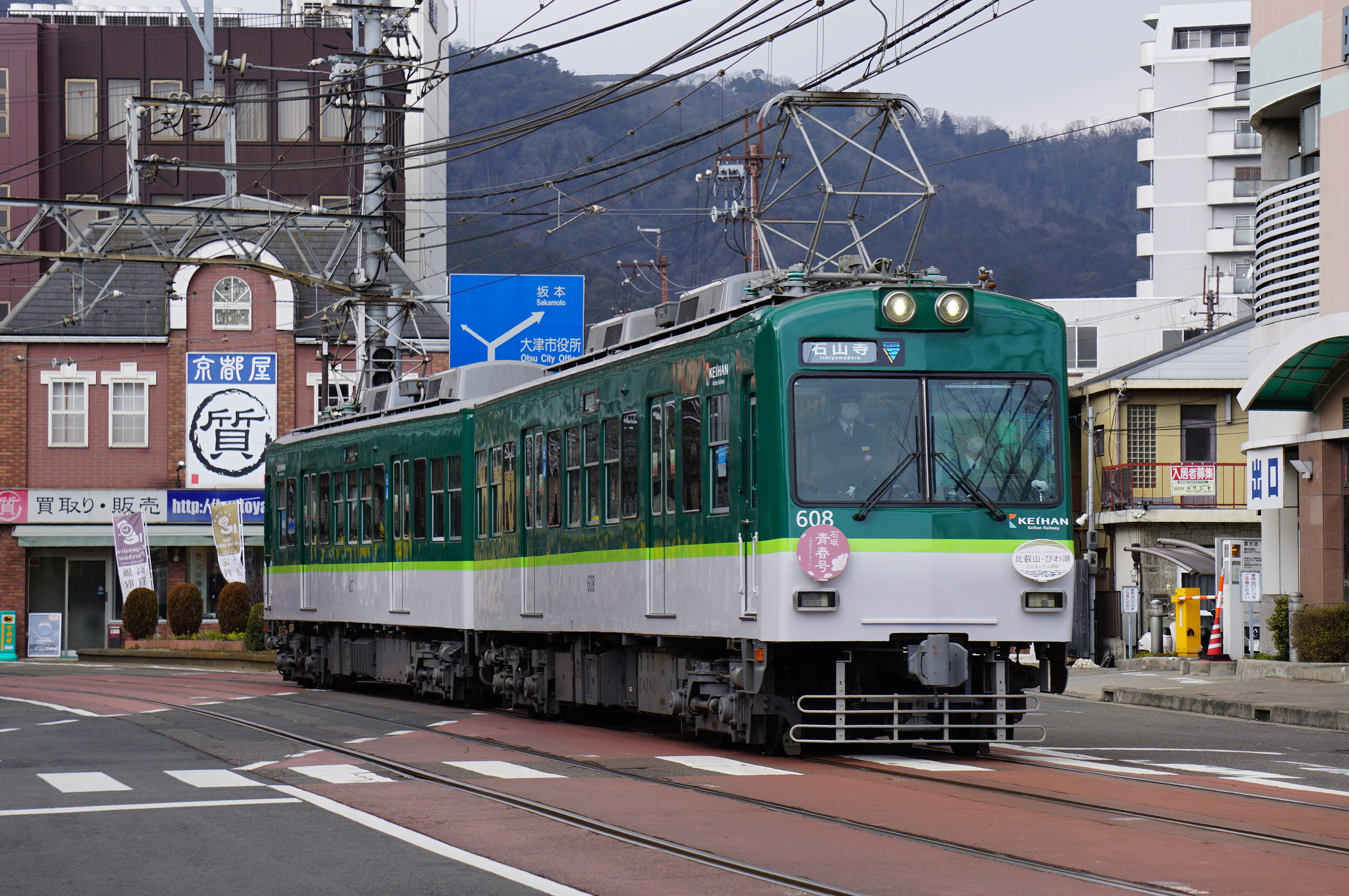 교토 애니메이션 - 본사가 고하타 역(게이한) 부근에 있으며, 최근에는 2011년 극장판 케이온!에서는 이시야마사카 본선에서 랩핑 전차를 운행하는 등, 콜라보 PR을 전개했다. 중2병이라도 사랑이 하고 싶어! (애니메이션)(2012년)이나 울려라! 유포니엄 (애니메이션)(2015년)에서도 촬영 협력에 가담한 것 외에, 랩핑 전차를 운행하고 있다.