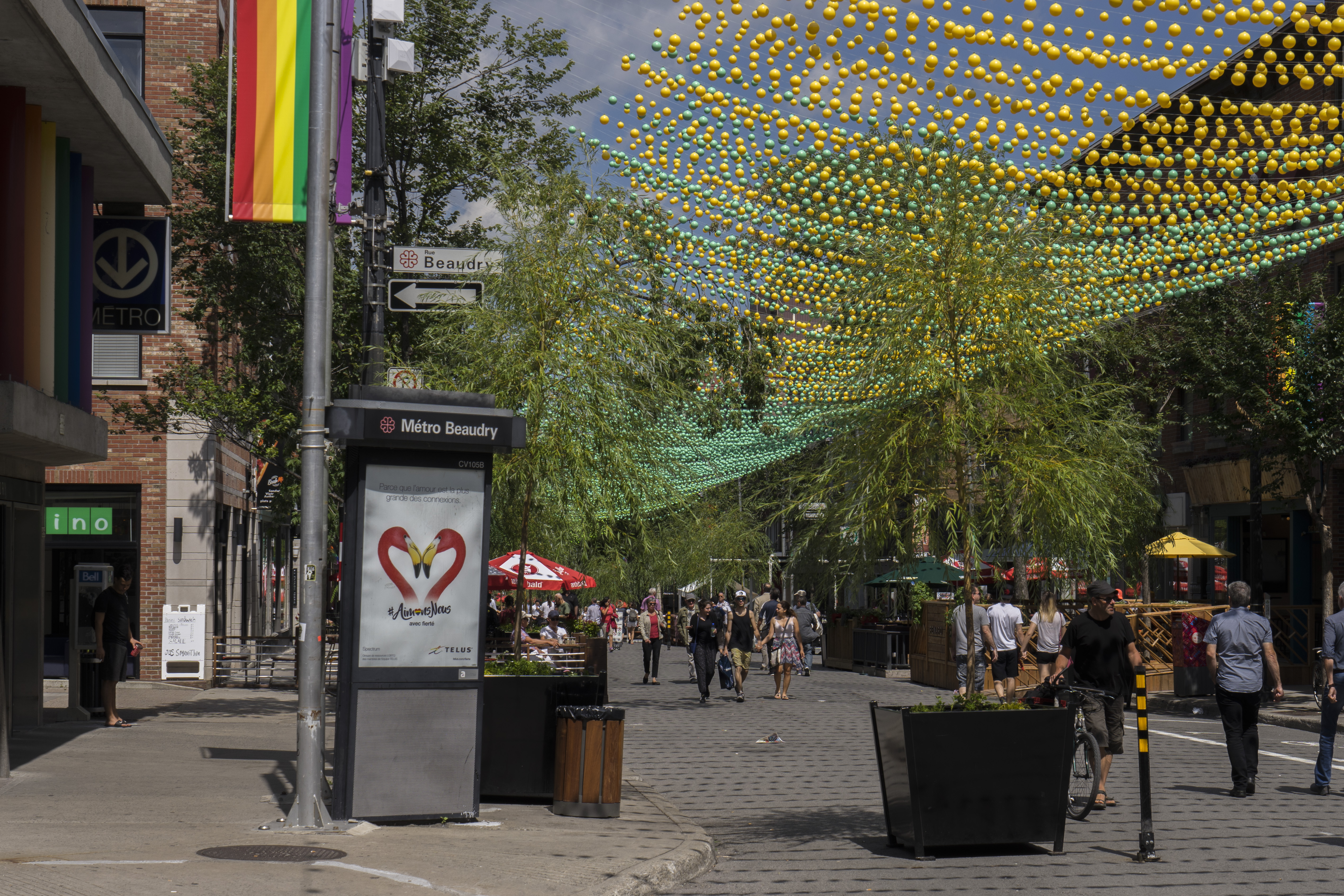 예를 들어 뉴욕에서는 1965년부터 게이 남성들의 집합이 불법이 아니었지만, 공개적으로 게이 바는 알코올 판매 허가를 받지 못했다. 1969년 6월 27일, 스톤월 인이라는 사설 게이 클럽에 대한 경찰의 급습은 그 후 3일 동안 술집 주변에서 1,000명 이상의 사람들이 연루된 일련의 소규모 소동으로 이어졌다. 스톤월 항쟁은 게이 커뮤니티의 위상뿐만 아니라 커뮤니티 내부의 역학 관계까지 변화시켰다. 이는 몇몇 유사한 사건들과 함께 북미 전역에 게이 게토가 등장하는 계기가 되었으며, 공간적 구성이 술집과 거리 순찰에서 특정 지역으로 이동했다. 이 "술집에서 거리로, 밤의 유흥에서 낮의 활동으로, '성적 일탈'에서 대안적인 생활 방식으로"의 전환은 게이 커뮤니티 발전의 결정적인 순간이었다.[10] 2016년 6월 24일, 스톤월 국립 기념물은 LGBT 권리 운동을 기리는 최초의 미국 국립 기념물로 지정되었다.[11] 몬트리올 게이 빌리지의 모습은 다음과 같다.