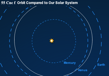 2005년 4월 미국 천문학회에서 이 행성의 존재가 처음 거론되었으나,[15] 이보다 2년 반 앞서 f의 존재를 밝힌 논문이 이미 출판된 바 있었다.[13] 게자리 55 f는 궤도 전체가 생명체 거주가능 영역 안에 있는 것으로 밝혀진 최초의 외계 행성이었다.[16] 이 발견으로 게자리 55 항성계는 태양을 제외하고 다섯 개 이상의 행성을 거느린 최초의 항성계가 되었다. 2013년 기준으로 행성이 다섯 개 있는 외계 항성계는 게자리 55, 글리제 581,[17] 케플러-62가 있다.