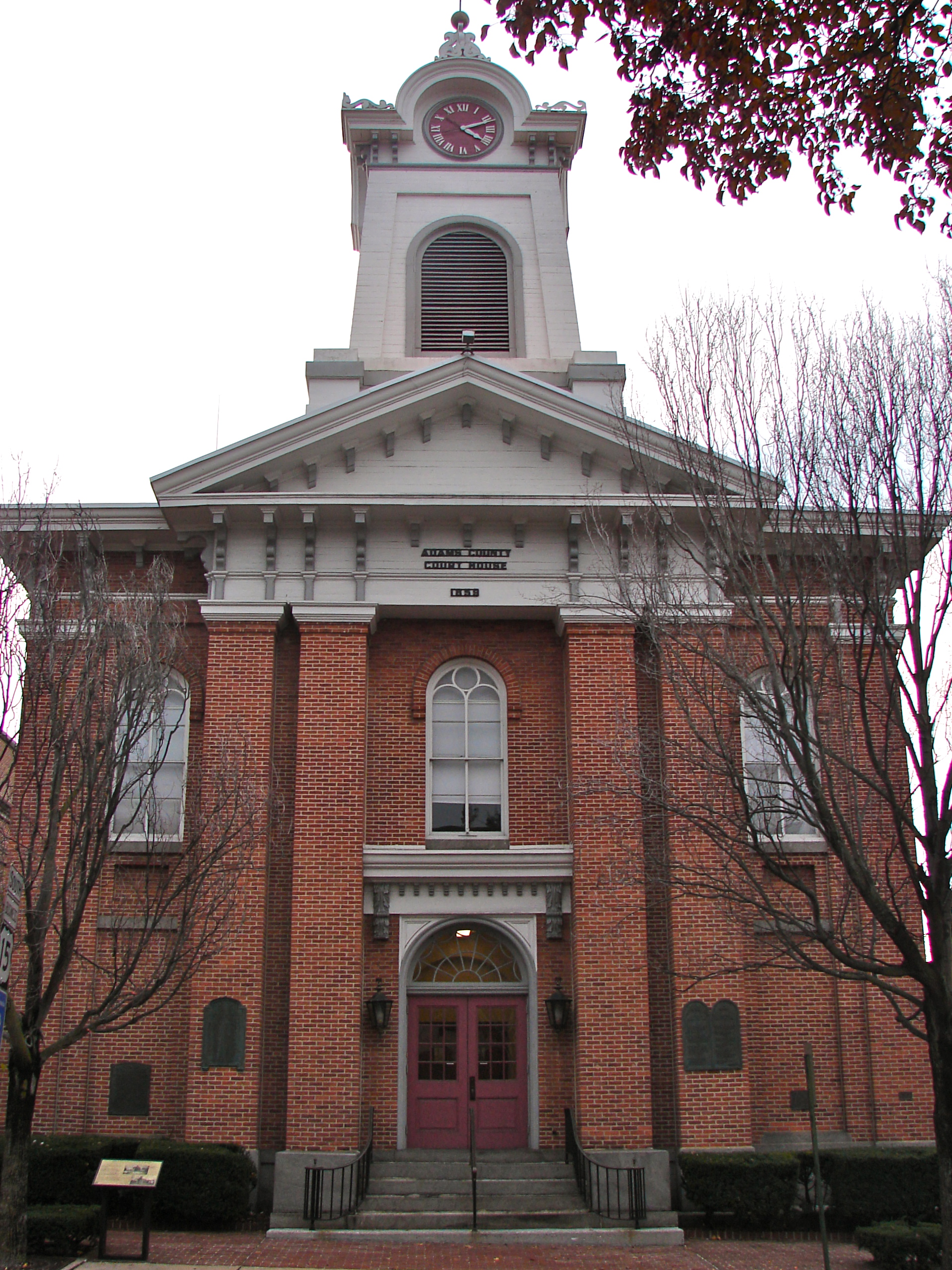 1790년 이른 시기부터 요크 카운티의 서부 지역을 분리하여 별도의 카운티로 만들려는 움직임이 시작되었다. 새로운 카운티의 중심지를 정하기 위한 위원회가 구성되었고, 결국 게티즈버그 바로 북동쪽에 있는 스트라반 타운십 (현재의 스트라반 타운십)에 위치를 선정했다. 1791년, 게티즈버그에 공공 건물을 건설하기 위해 스트라반 대신 추가 위원이 임명되었다. 1800년 1월 22일, 펜실베이니아 주 의회는 애덤스 카운티를 설립하고 게티즈버그를 그 군청 소재지로 지정했다.[8]