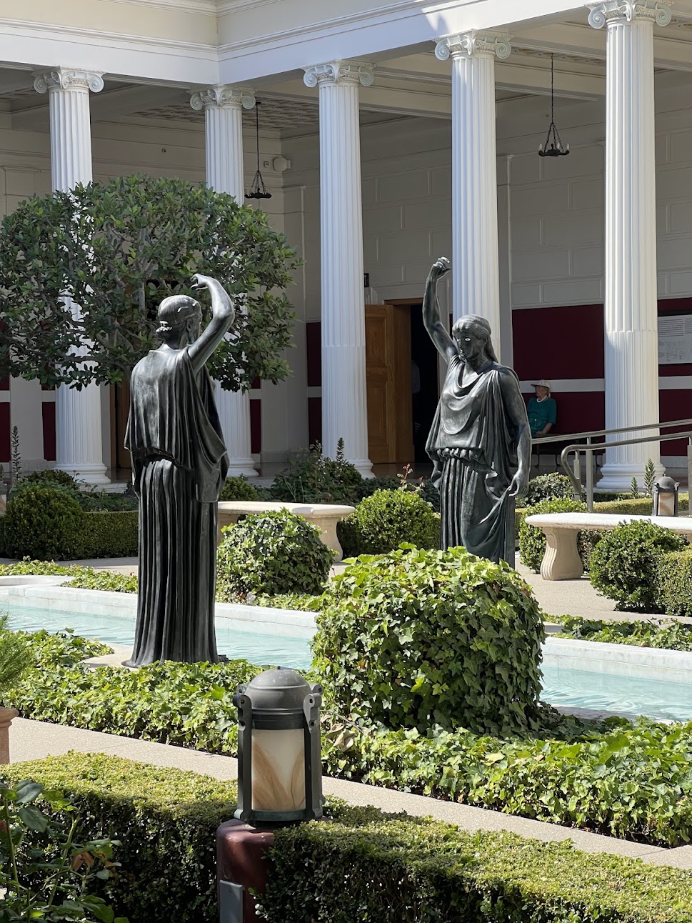 게티 쿠로스는 이 빌라에 전시되어 있는데, 박물관에서는 과학적 분석으로도 이 대리석상이 그리스 시대의 것인지 확정할 수 없어 "그리스, 기원전 약 530년경, 또는 현대 위조품"으로 분류하고 있다.[36][48] 만약 진품이라면, 게티 쿠로스는 현존하는 12개의 완전한 실물 크기 쿠로이 중 하나이다.[49] 마버리 홀 제우스상은 로마 근처 티볼리 유적에서 발굴된 높이 약 205.74cm의 대리석상이다.[50]