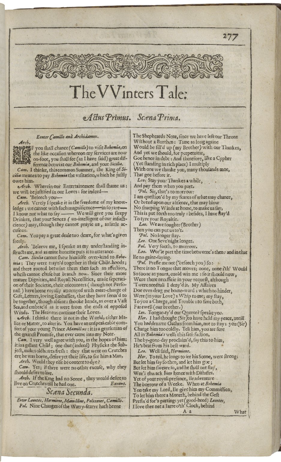 초판 출판 | 1623년, 퍼스트 폴리오 |