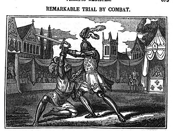 잉글랜드에는 초기에는 결투가 없었던 것으로 보이지만, 노르망인의 정복 후 윌리엄 1세에 의해 도입되었다.[123]