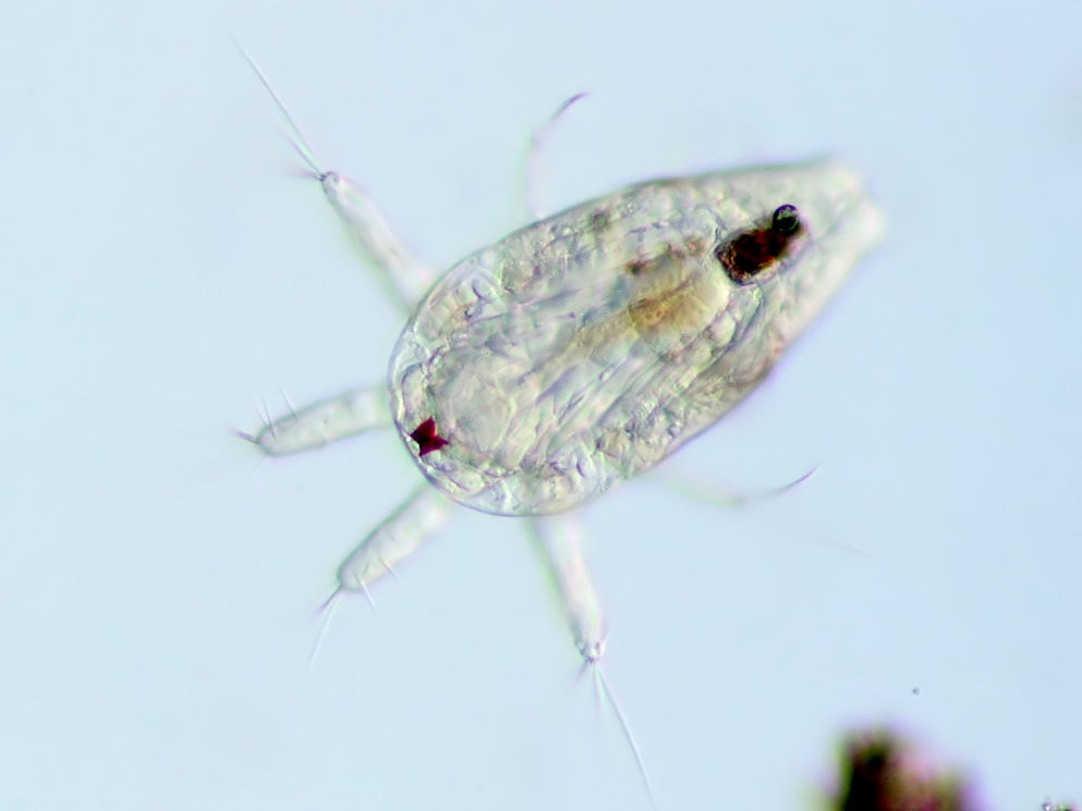 육각류는 현재 갑각류의 크라운 그룹에 속하는 것으로 여겨지며, 분자생물학적 연구와 육각류 눈의 형태 및 발생 과정의 유사성이 이를 뒷받침한다.[17] 육각류의 눈은 다지류의 눈과는 매우 다르다.중앙눈(ocelli)과 겹눈은 마지막 공통 조상 절지동물에 존재했을 가능성이 높으며,[18] 다른 문의 중앙눈과 함께 조상형질일 수 있다.[19] 협각류와 턱이 있는 절지동물에는 중앙눈이,[20] 협각류에는 측면눈도 존재한다.[20]