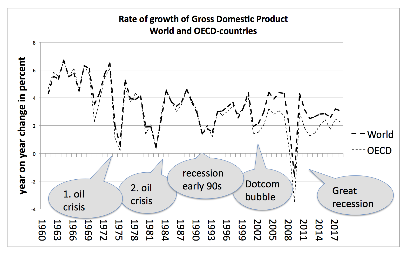 1961년 이후 국내총생산 변화율, 세계 및 경제 협력 개발 기구