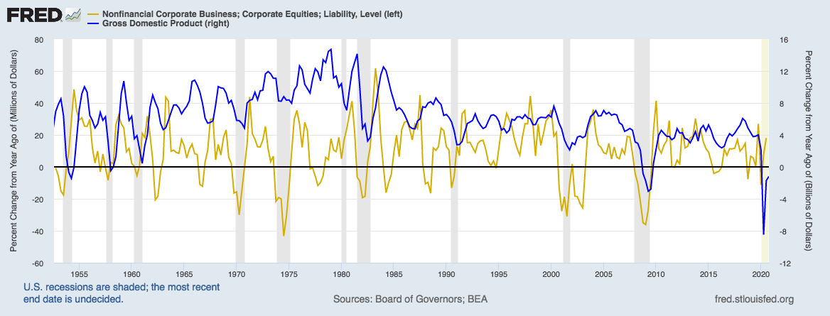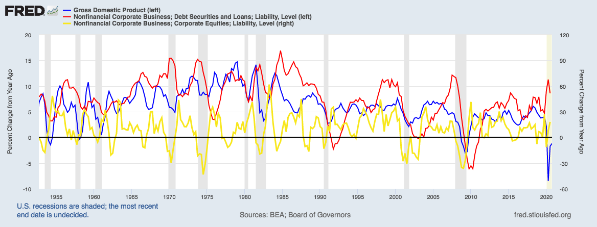 선행 지표로서의 주식, 동행 지표로서의 국내총생산, 후행 지표로서의 기업 신용