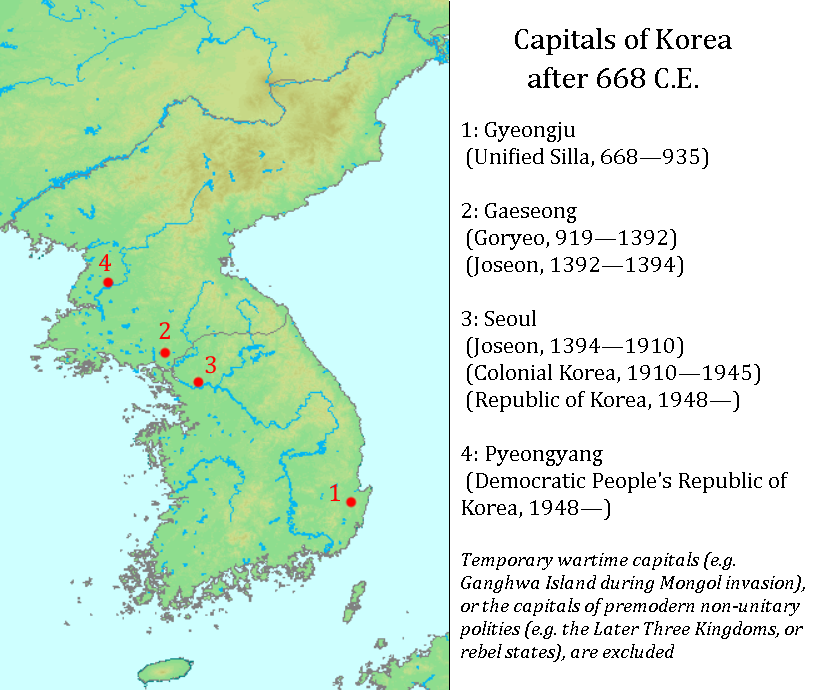 8세기 후반, 신라는 쇠퇴하기 시작했고, 10세기 초 한반도는 다시 세 나라로 분열되었다. 이후 고려가 935년 신라를 굴복시키고 이듬해 한반도를 통일하였다.[27] 고려의 정치, 문화 중심지는 개경(지금의 개성)으로 옮겨갔고, 위신 방언 또한 신라의 동남부 방언에서 개경의 중부 방언으로 바뀌었다.[27] 전통적으로 고대 한국어의 종말은 10세기의 이러한 정치적 중심지 변화와 관련이 있는 것으로 여겨졌다.[26]