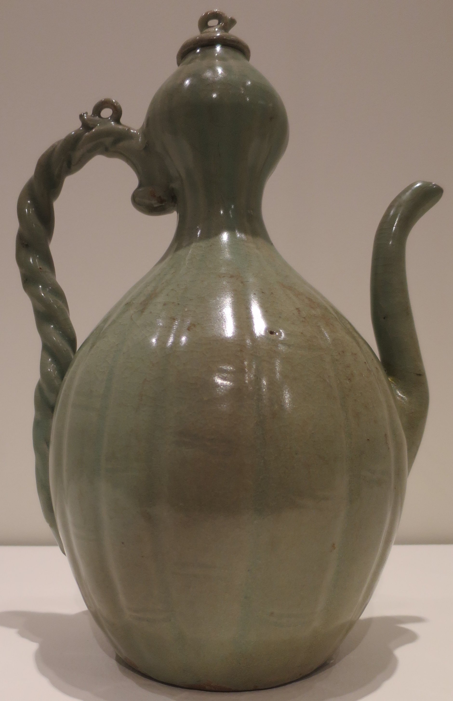 Dragon-shaped Pitcher, Celadon with Incised Scales and Fish Design