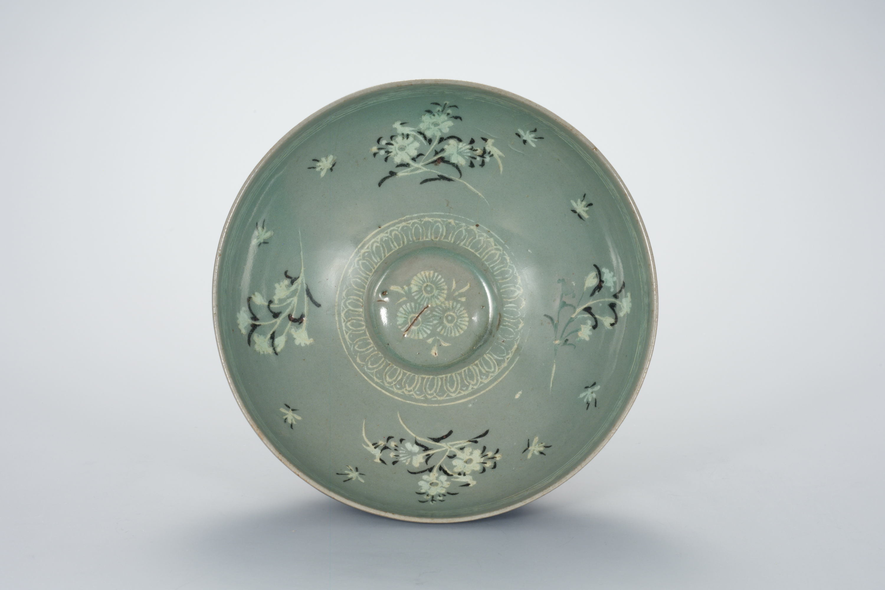 오월(吳越, 907년~)과 송나라의 청자 기술의 영향을 받아 고려에서도 청자를 만들기 시작했다. 12세기 전반에는 분청색 도기를 생산하며 '비색(翡色)'이라 불렀다.상감청자는 그릇 표면에 무늬를 새기고 백토(白土)나 흑토(黑土)를 메워 넣어 초벌구이 한 후 유약을 바른 것이다. 간혹 진사(辰砂)를 섞어 밝은 홍색을 내기도 했다.[34] 흑토 상감 배경 위에 넓은 화판(花瓣)의 백토 상감을 한 모란, 보상화문 등은 흑백의 윤곽을 인상적으로 부각시킨다. 박지문(剝地紋)이라고 불리는 역상감법(逆象嵌法)도 사용되었다.