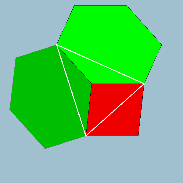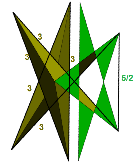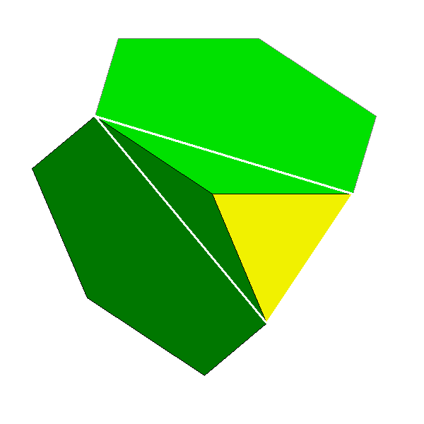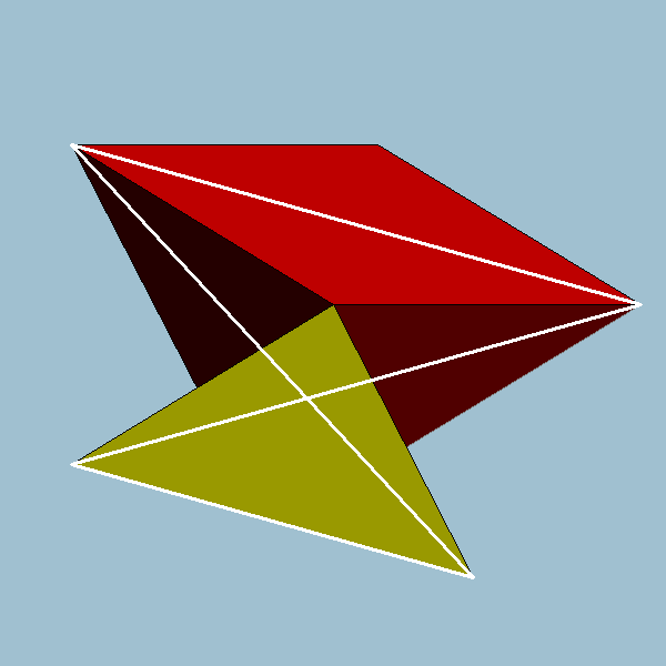 불가능한 결합체: 어떤 다면체는 다중의 모서리를 가지고 그 면들은 둘 이상의 다면체의 면이지만 이것들은 다면체들이 모서리를 공유하므로 이전 개념의 결합체는 아니다.[1]