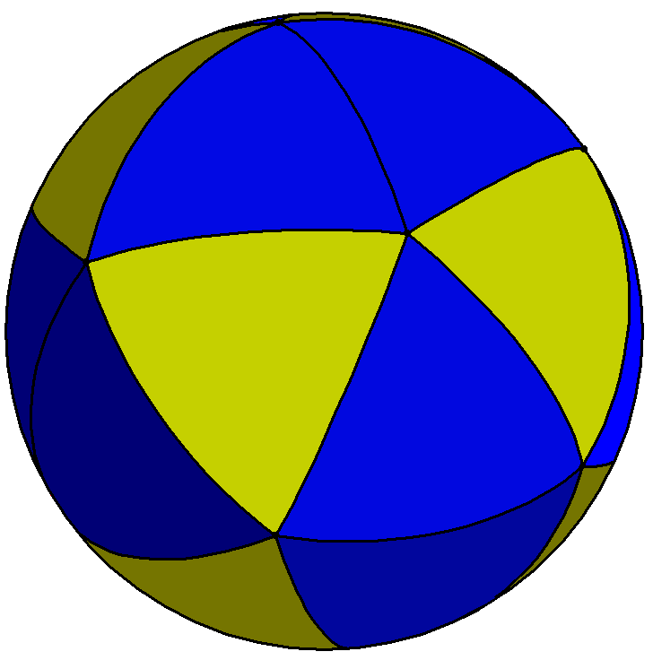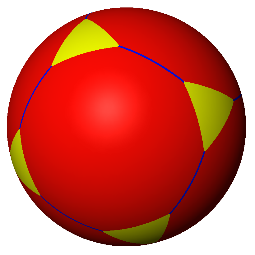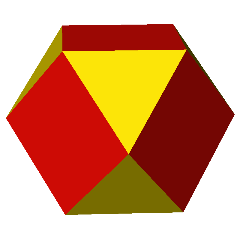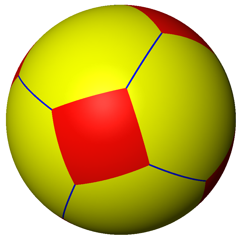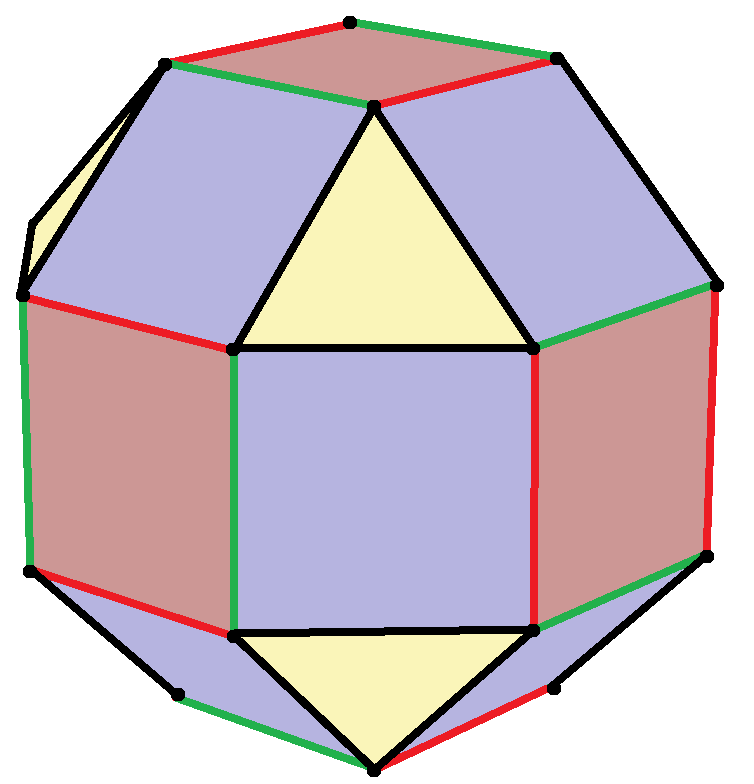 고른 다면체 - 사면반육면체 사면반육면체는 7개의 면, 12개의 모서리, 6개의 꼭짓점을 가지며 오일러 지표가 1인 무방향성 다면체이다.