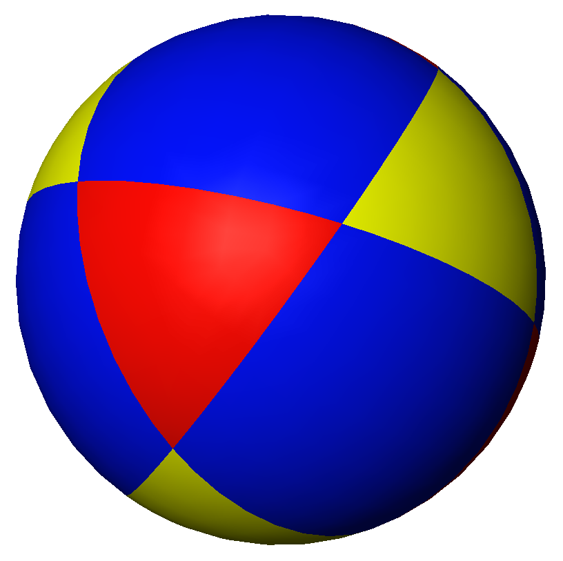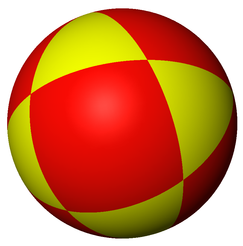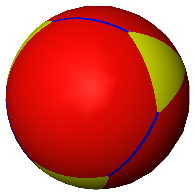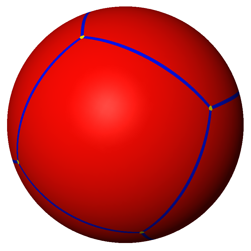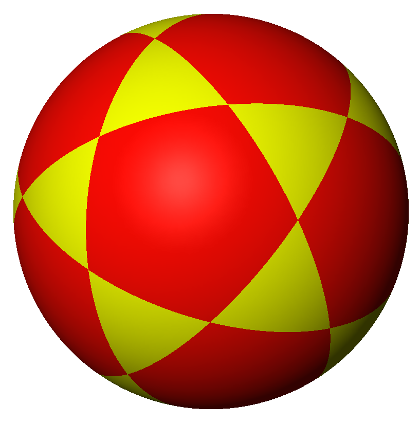 고른 다면체 - 사면반육면체 사면반육면체는 7개의 면, 12개의 모서리, 6개의 꼭짓점을 가지며 오일러 지표가 1인 무방향성 다면체이다.