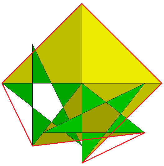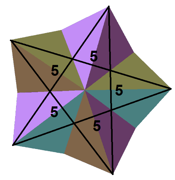 이중 덮음: 고른 다면체의 정의를 만족하는 이중으로 덮는 비등방성 다면체가 있다. 이것은 그 면과 모서리와 꼭짓점을 두 배로 가진다. 이것은 대부분 고른 다면체로 계수하지 않는다.[1]