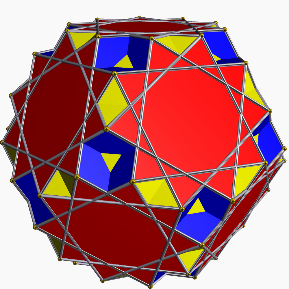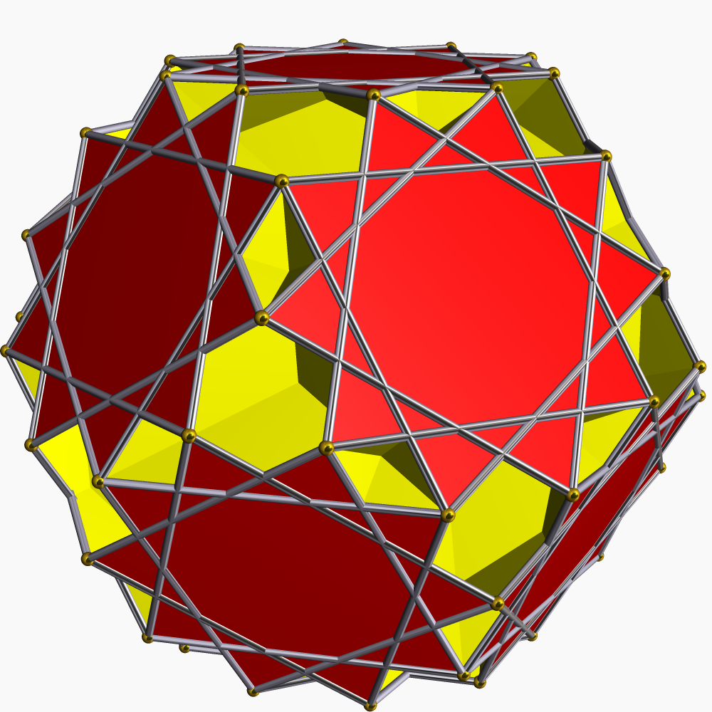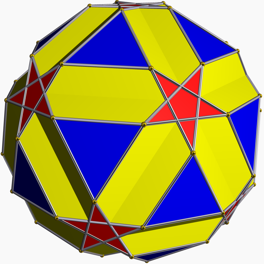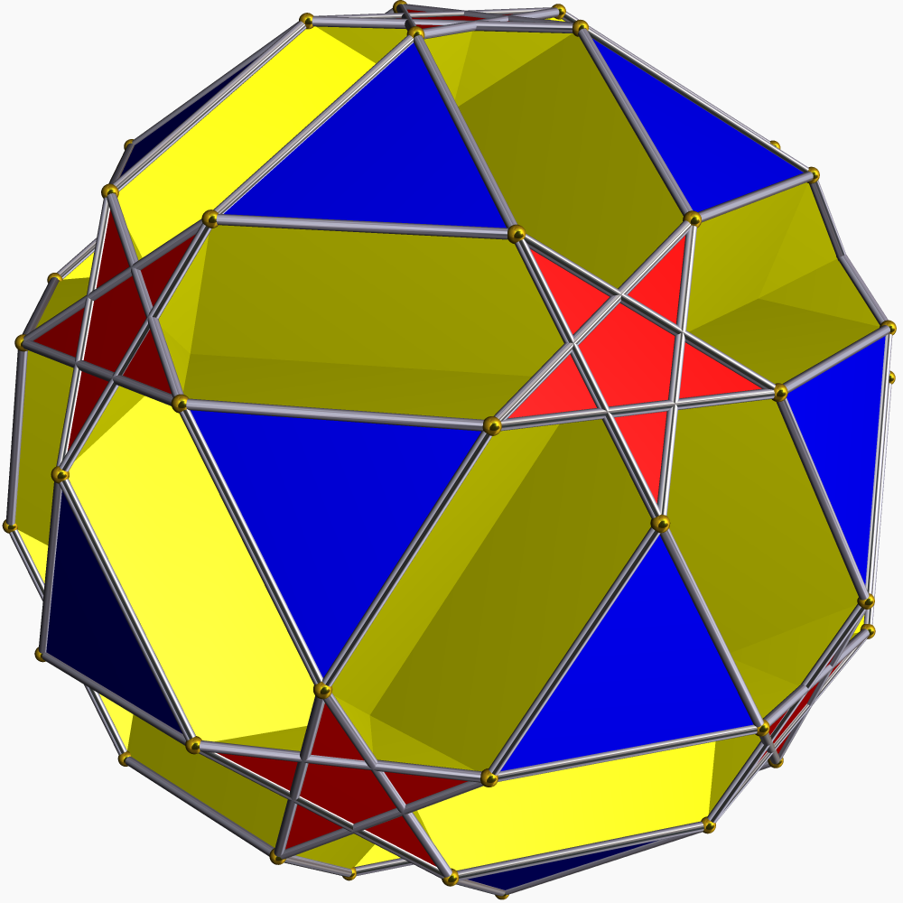 고른 다면체 - 깎은 큰 십이면체 깎은 큰 십이면체는 정십각형 12개와 별 모양 오각형 12개로 이루어진 다면체로, 큰 십이면체를 깎아서 만들 수 있으며 작은 별 오각 십이면체와 쌍대 관계를 가진다.