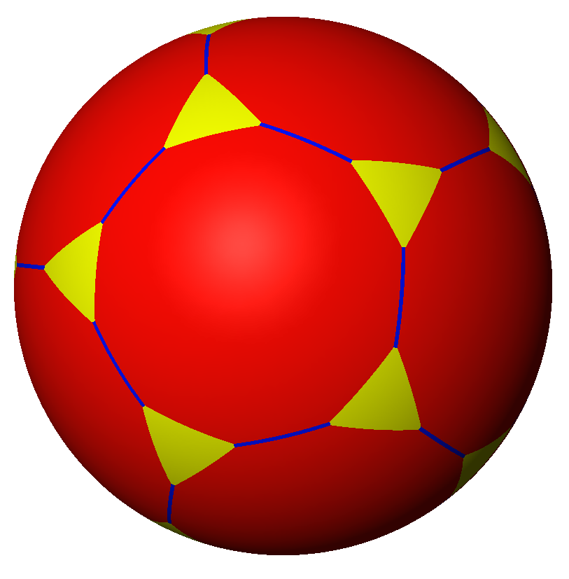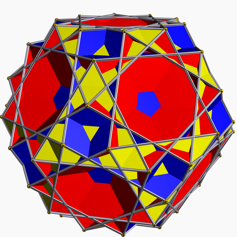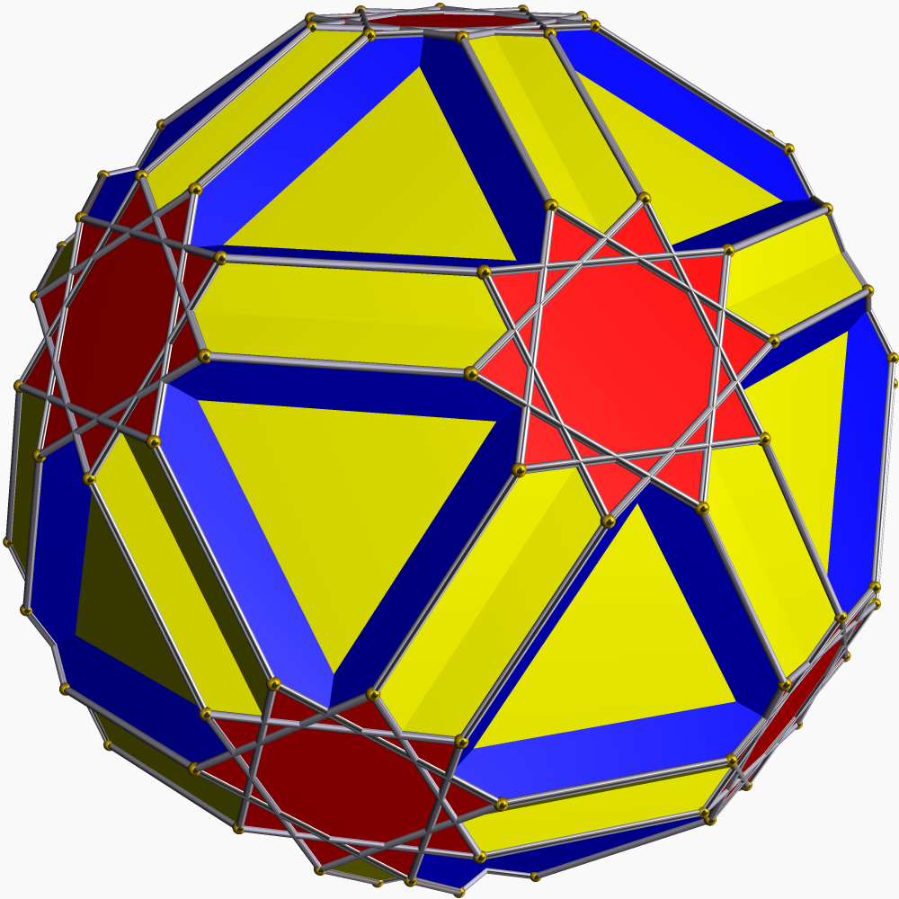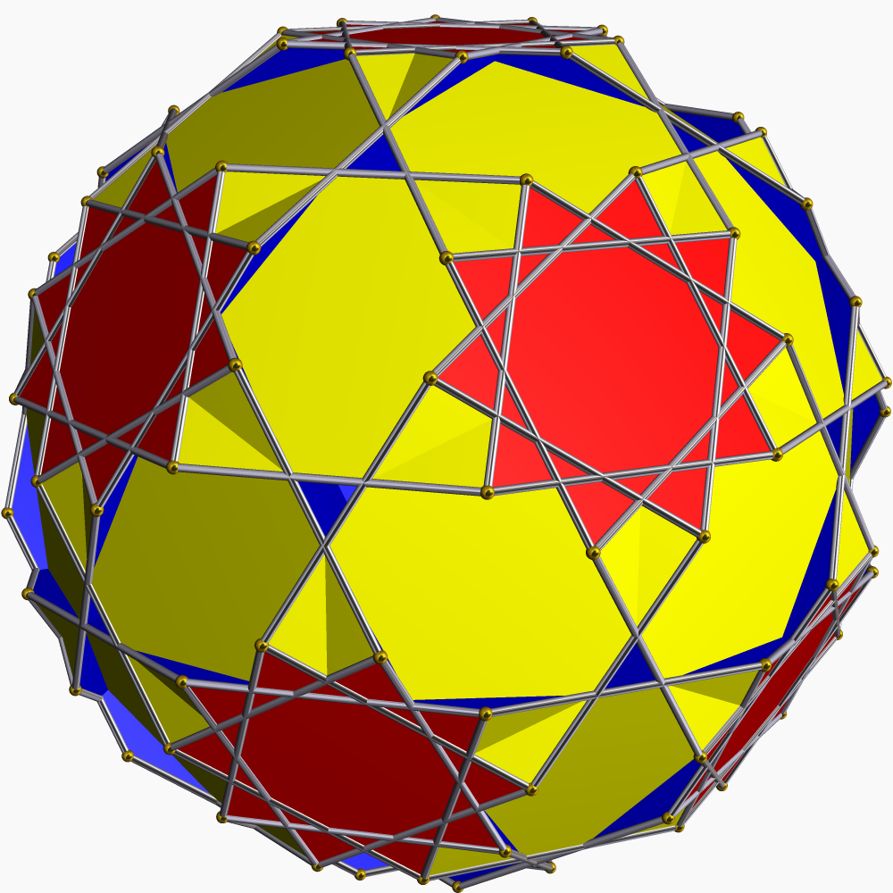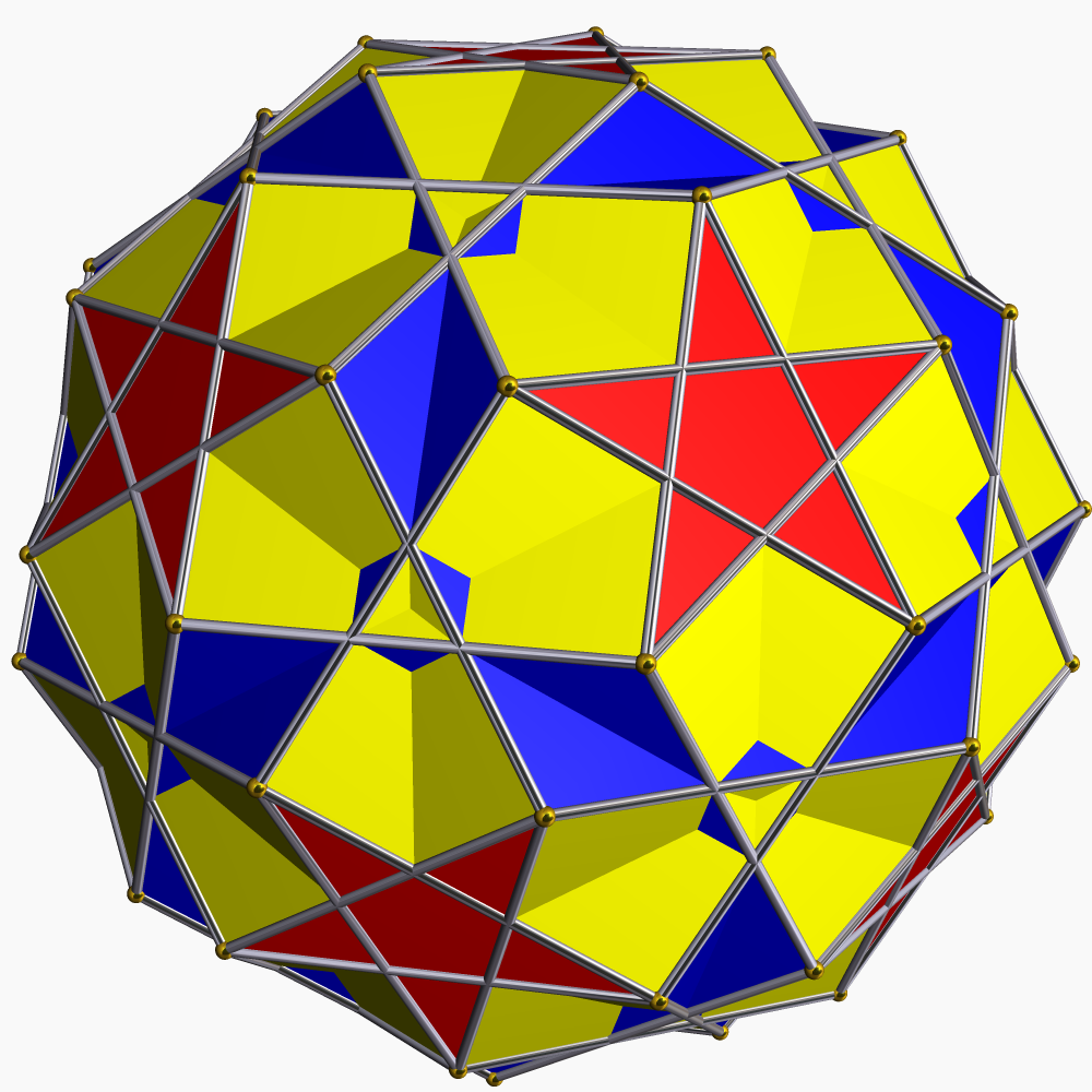고른 다면체 - 깎은 큰 십이면체 깎은 큰 십이면체는 정십각형 12개와 별 모양 오각형 12개로 이루어진 다면체로, 큰 십이면체를 깎아서 만들 수 있으며 작은 별 오각 십이면체와 쌍대 관계를 가진다.