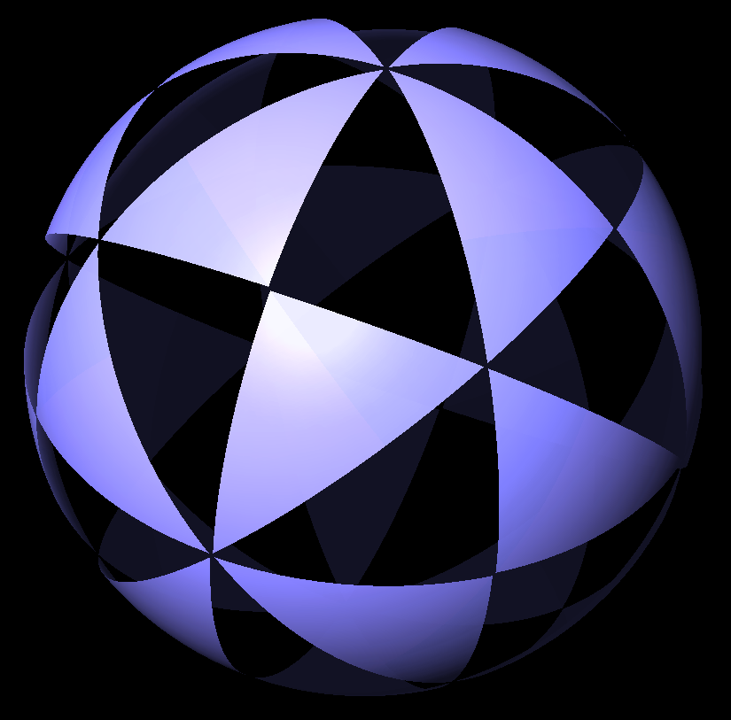 1993년, 츠비 하르엘(Zvi Har'El, 1949–2008)[4]은 '''Kaleido'''라는 컴퓨터 프로그램을 사용하여 정다면체와 쌍대 다면체의 완전한 만화경 구조를 만들고, ''정다면체의 균일한 해법''에서 이를 요약하여 그림 1-80을 계산했다.[5]