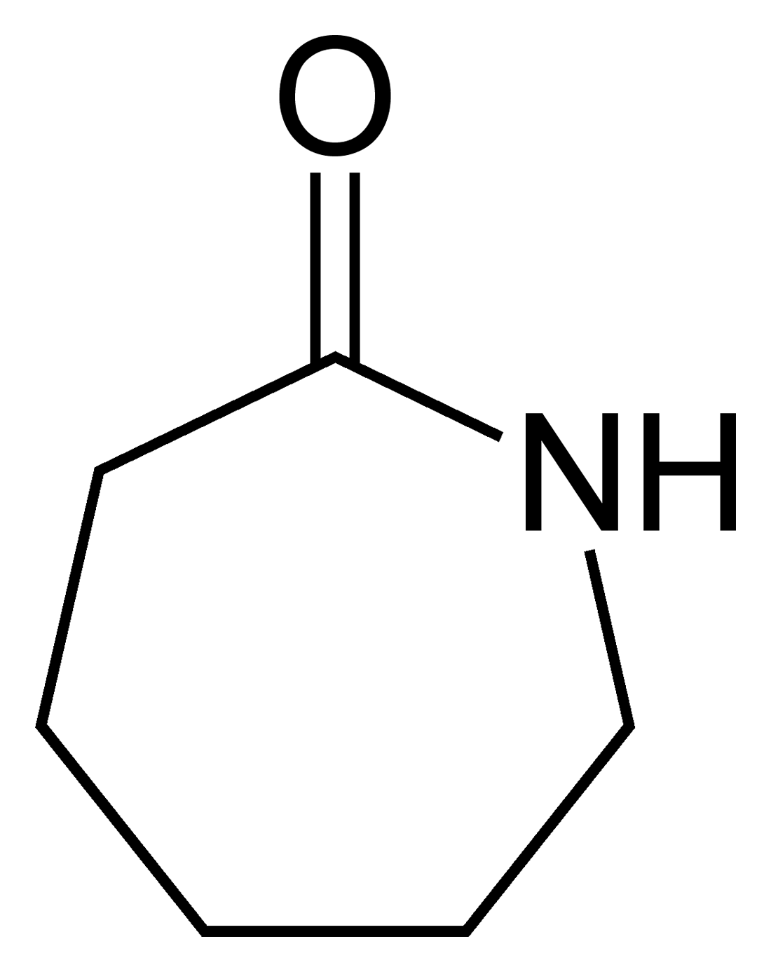 카프로락탐, 7원 헤테로고리 유기 화합물(비방향족). 피리딘, 6원 헤테로고리 화합물, 메틴 수소 원자 암시, 표시되지 않음, 비편재화된 π-전자가 개별 결합으로 표시됨(방향족).