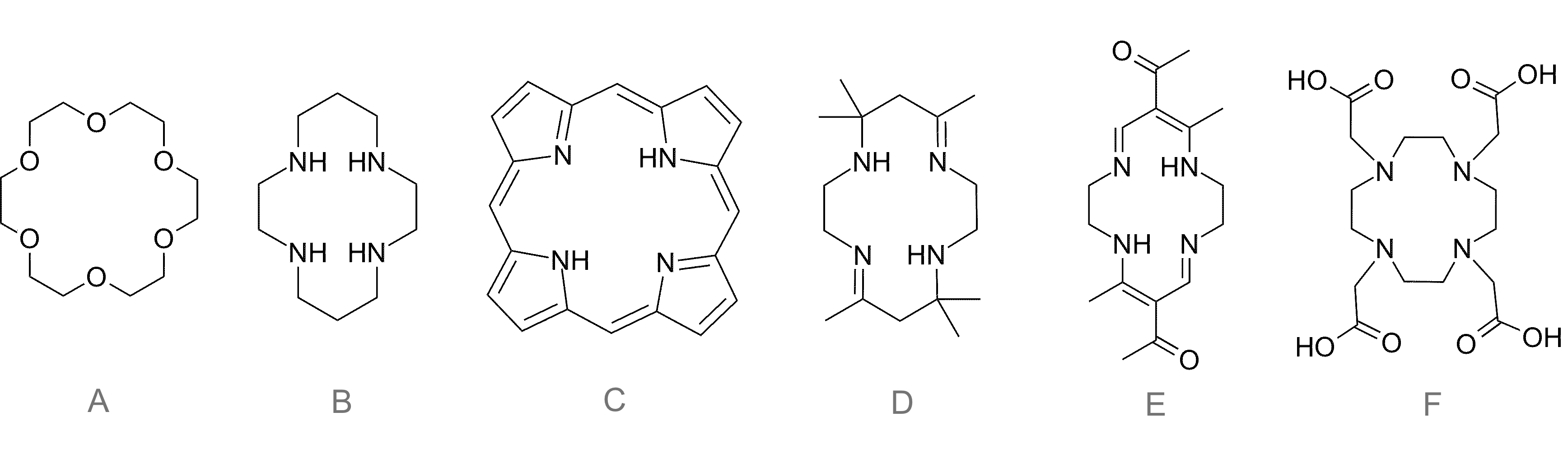 포르피린은 대환상 화합물의 예시이다.[11] 크라운 에테르의 한 종류로 18-크라운-6이, 테트라-아자 킬레이터의 한 종류로 시클람이 있다.[11]