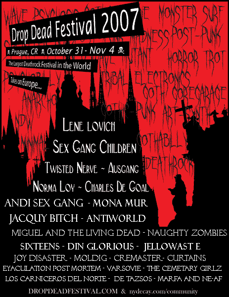 음악고딕 록은 어둡고 분위기 있는 사운드를 특징으로 하는 록 음악의 한 장르이다.[16] 1980년대에는 바우하우스, 더 큐어,[16] 더 버스데이 파티, 사우던 데스 컬트, 스페시멘, 섹스 갱 칠드런, UK 디케이, 버진 프룬스, 킬링 조크, 더 댐드 등이 대표적인 고딕 록 밴드로 활동했다.[17]