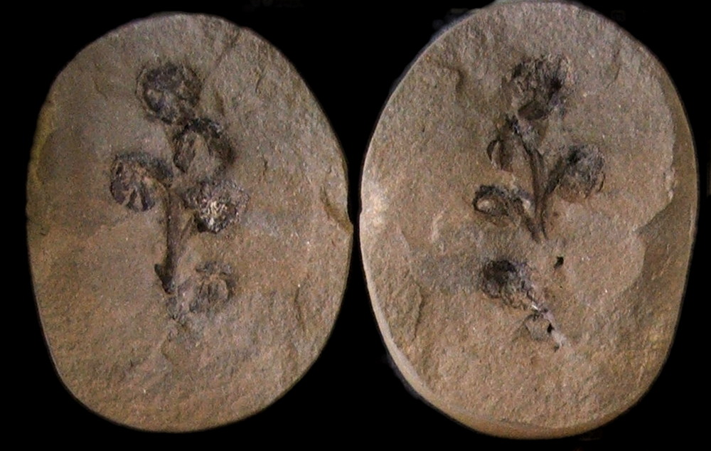''Crossotheca hughesiana'' 키드스턴, 중기 펜실베이니아기, 영국 더들리 근처 코즐리. 압착 (''in situ'')된 광물화로 보존된 리기노프테리데안 꽃가루 기관. 케임브리지 세지윅 박물관 소장.