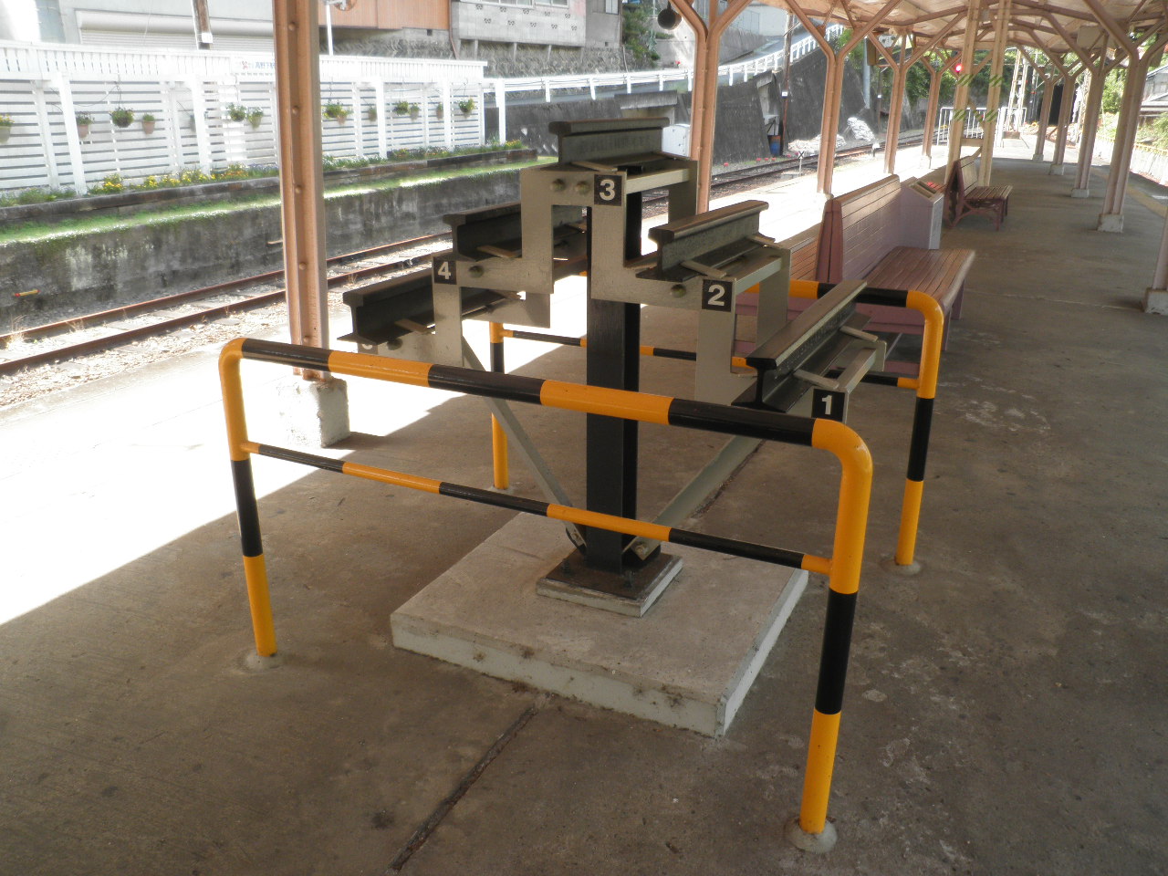 역사의 역명판은 쇼와 초기 디자인으로, 승강장의 역명판은 고야 꽃 철도 타입으로 각각 교체되었다. 전시 트리와 전시 케이스가 설치되었으며, 전시 트리에는 국내외 5개 회사의 옛 레일이 고정되어 전시되고 있다.