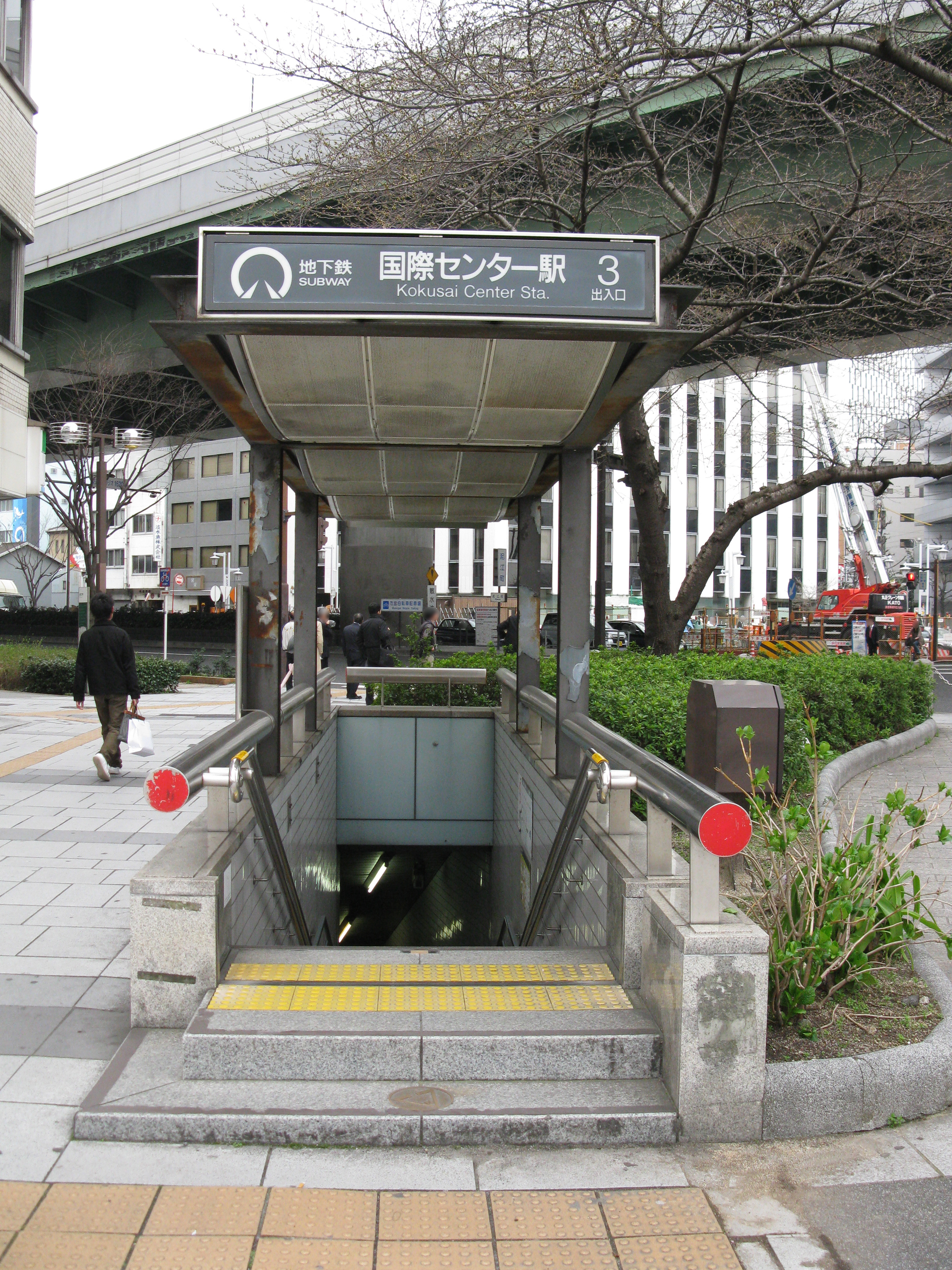 역 번호는 '''S03'''이며, 액센트 컬러는 다크 그레이이다. 주변에 빌딩이 많아 아침저녁으로는 통근객으로 붐비지만, 나고야역까지 지하상가 유니몰로 직결되어 도보권 내에 있으며, 나고야 시영 버스도 모두 나고야역으로 향하므로 지하철을 이용하는 승객은 그다지 많지 않다. 영어 표기는 "Kokusai Center"와 "International Center"가 병기되어 있다.
