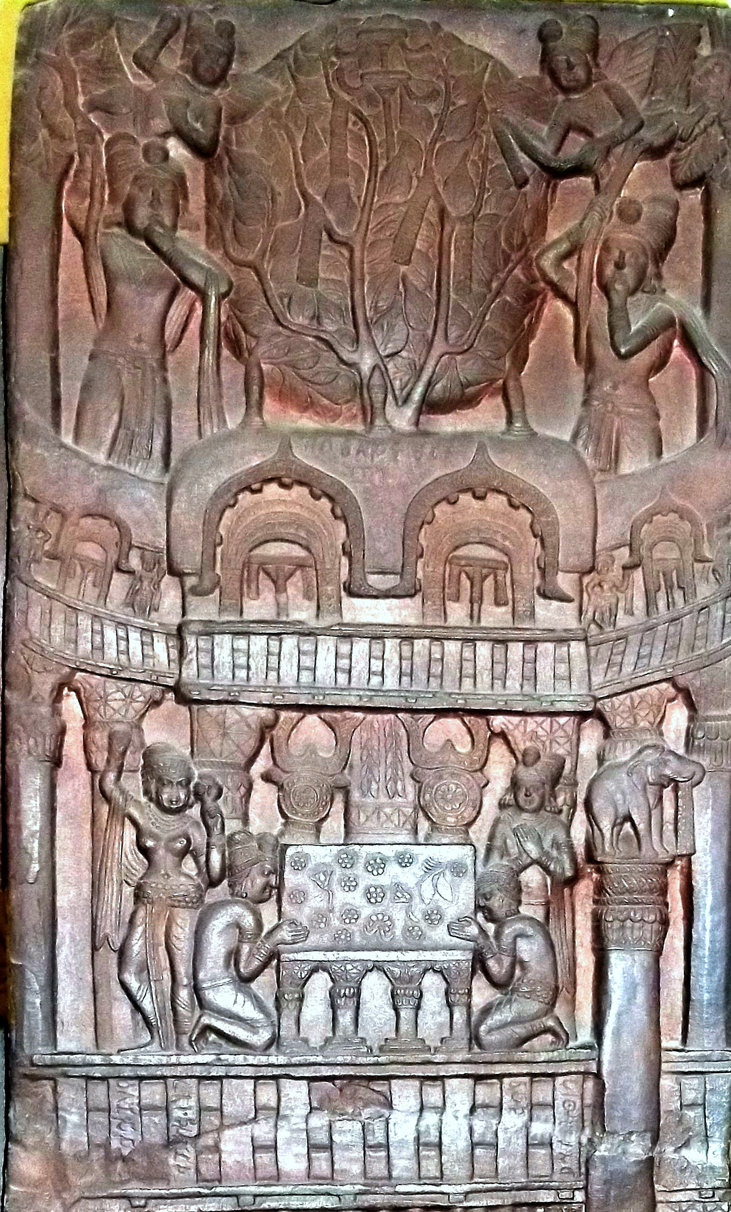 고대 불교 경전에 따르면,[22] 부처는 사람들이 자신의 이름으로 공양을 드릴 수 있도록 사바스티 근처 제타바나 사원 문 앞에 보드가야의 보리수 씨앗을 심는 것을 승인했다. 목갈라나는 보리수 열매가 땅에 떨어지기 전에 줄기에서 떨어진 열매를 가져갔고, 아나타핀다다는 그것을 금 항아리에 심었다. 묘목은 즉시 50 큐빗 높이로 솟아올랐고, 부처는 이를 헌정하기 위해 하룻밤을 그 아래에서 명상하며 보냈다. 이 나무는 아난다의 지시로 심어졌기 때문에 아난다 보리라고 불린다.