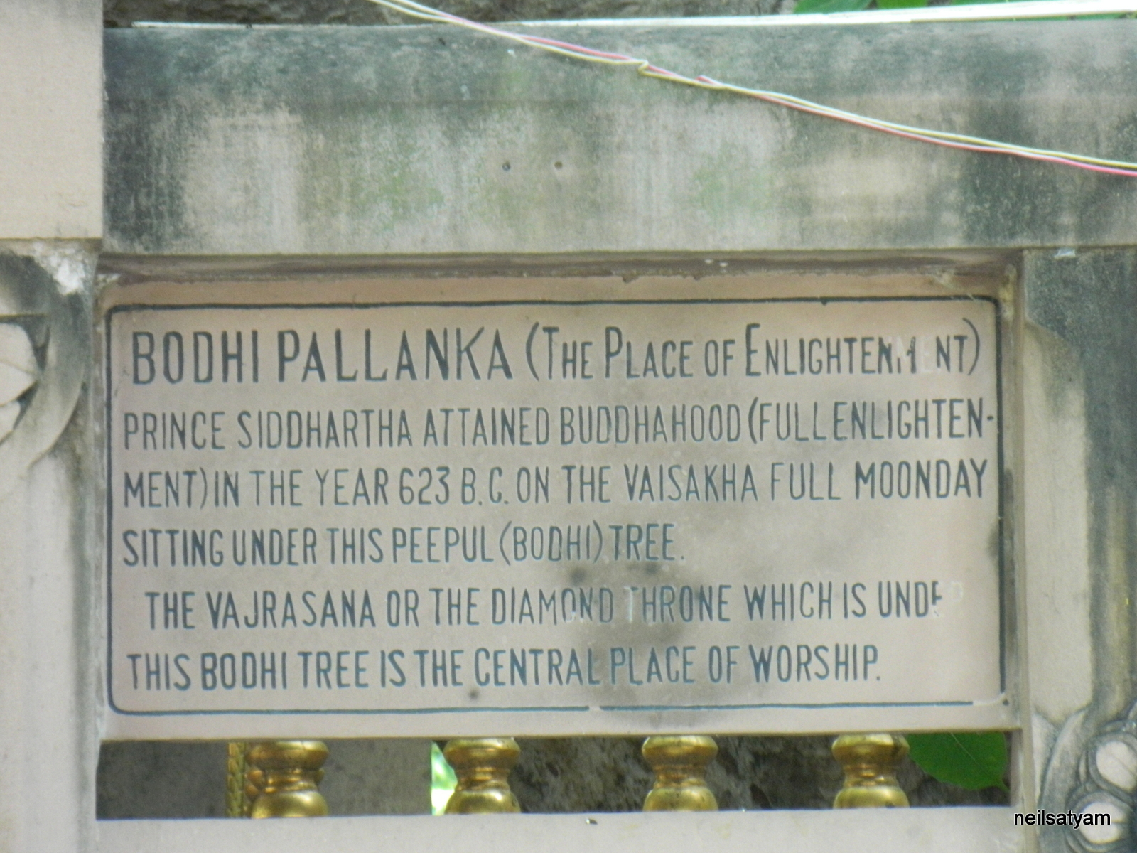 마하보디 사원의 보리수는 스리 마하 보디(Sri Maha Bodhi)라고 불린다.[13] 고타마 붓다는 ''Ficus religiosa'' 아래에서 명상하며 깨달음(보디)을 얻었다. 불교 경전에 따르면, 부처는 이 나무 아래에서 7주 (49일) 동안 자리를 뜨지 않고 명상했다.[13] 이후 부처가 앉았던 자리에 아니미살로카나 체티야(Animisalocana cetiya)라는 사당이 세워졌다.[13]