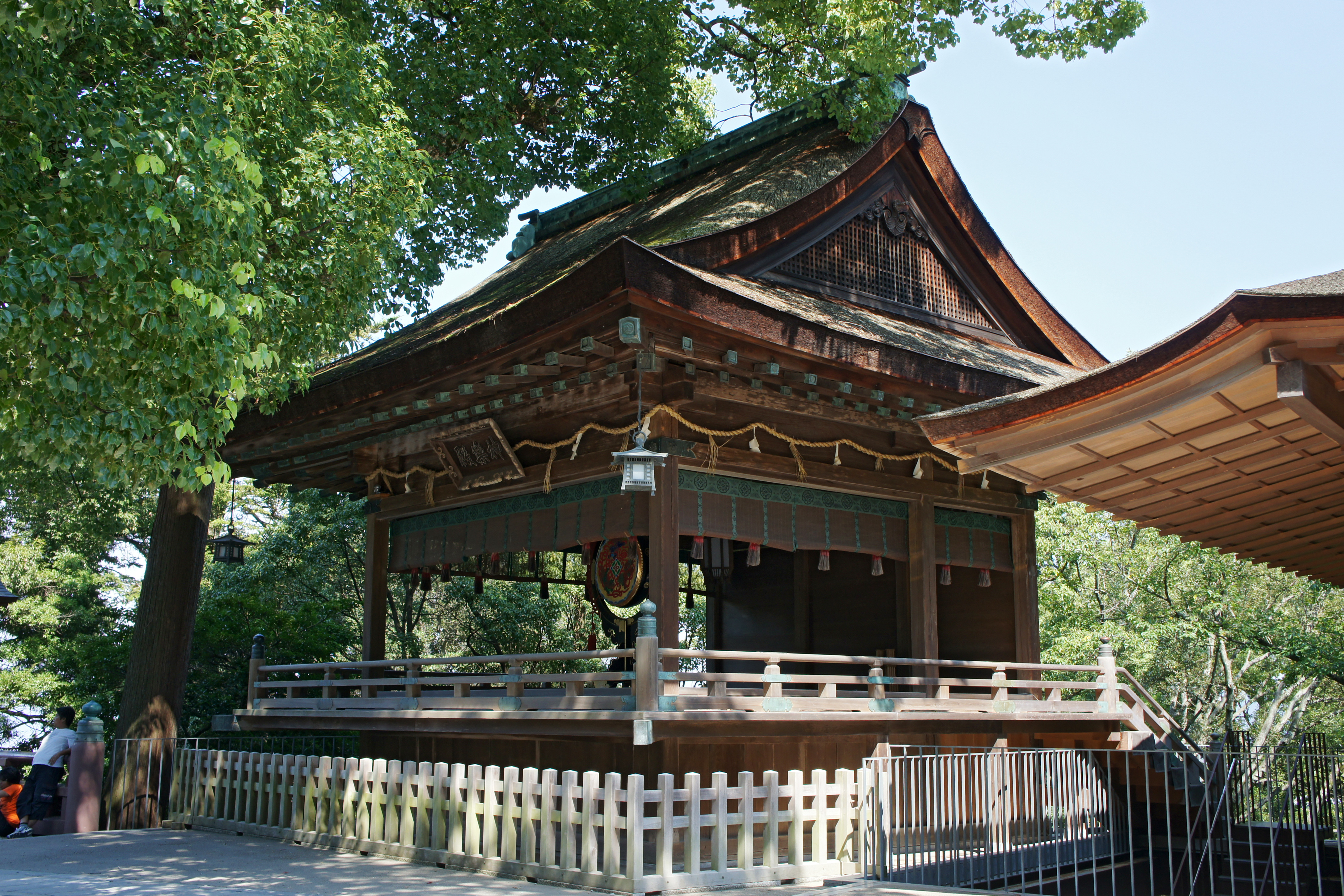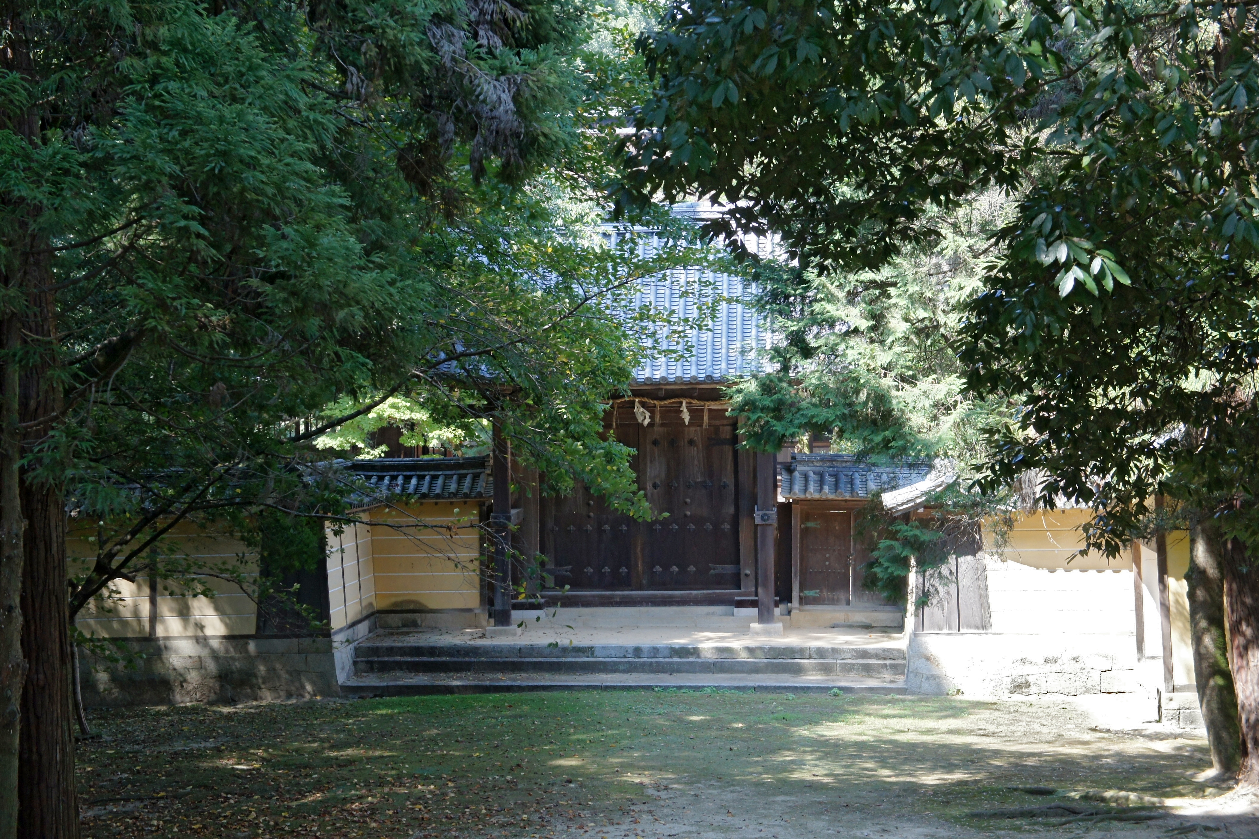 :* 본전: 1878년 재건. 히와다부키(桧皮葺, 껍질로 지붕을 덮는 방식)・다이샤세키무네즈쿠리(大社関棟造り) 양식이다. 오모노누시노 미코토와 스토쿠 천황을 함께 모시고 있다.[8]