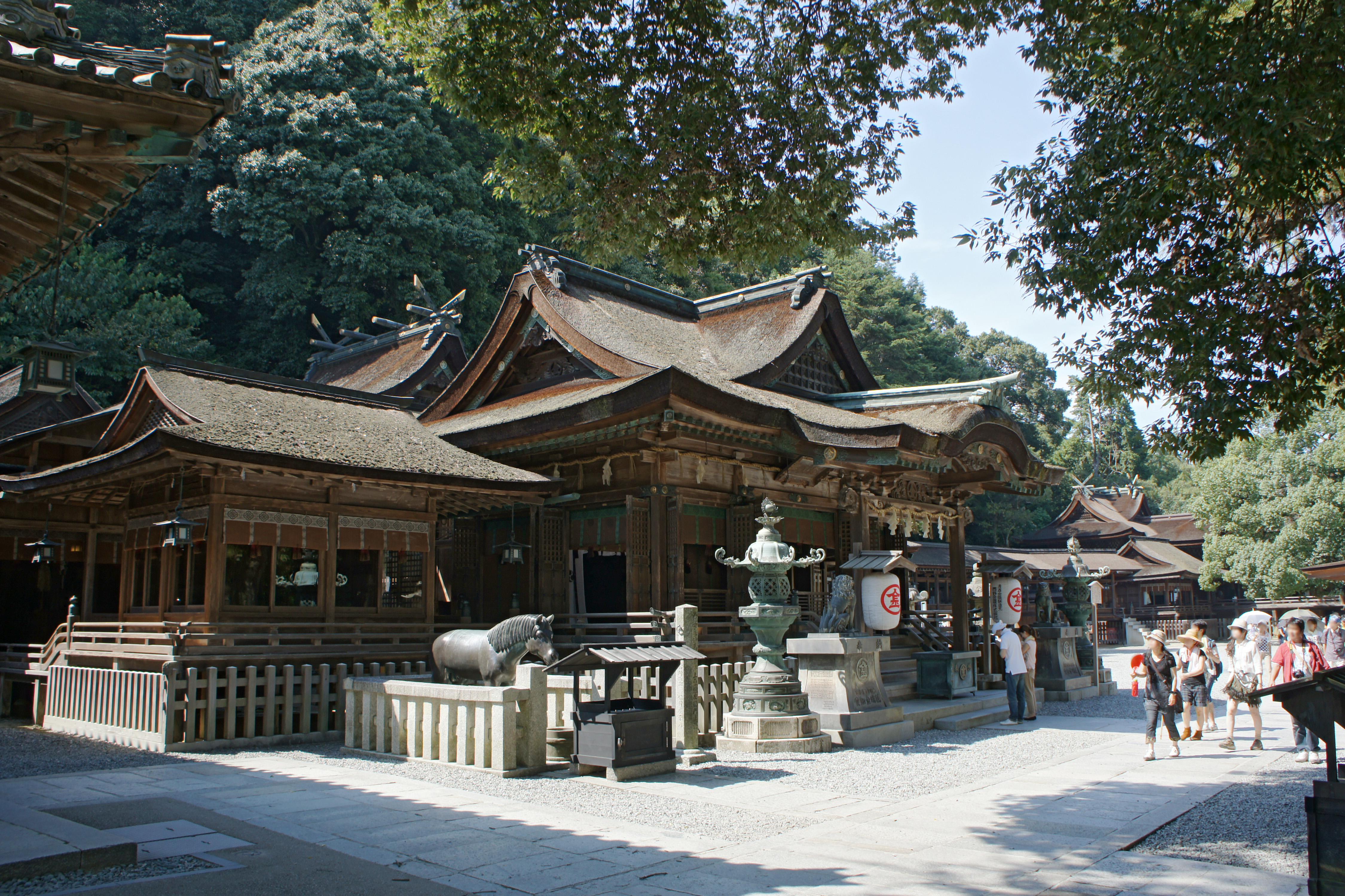 1세기경에 창건되었다고 전해진다. 이 신사의 주신은 항해와 관련된 영(靈) (불교의 신 곤피라)인 오모노누시노미코토이다. 1165년에는 스토쿠 천황의 영혼도 함께 모셔졌다.