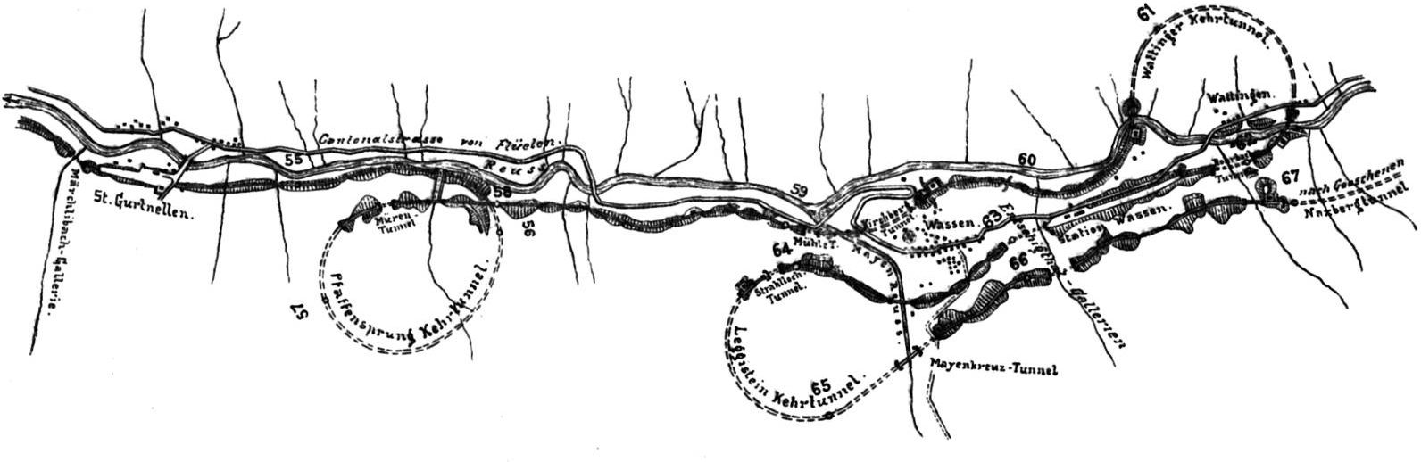 스위스를 관통하는 남북 경로는 1848년부터 논의되었으며, 1869년 베른에서 열린 국제회의에서 가장 좋은 경로는 고트하르트 고개 아래 터널로 연결된 로이스강과 티치노강의 계곡을 경유하는 것이라고 결정되었다. 선택된 길은 최소한 13세기부터 순례자와 상인들이 사용했던 고대의 길이었다.[27][28]