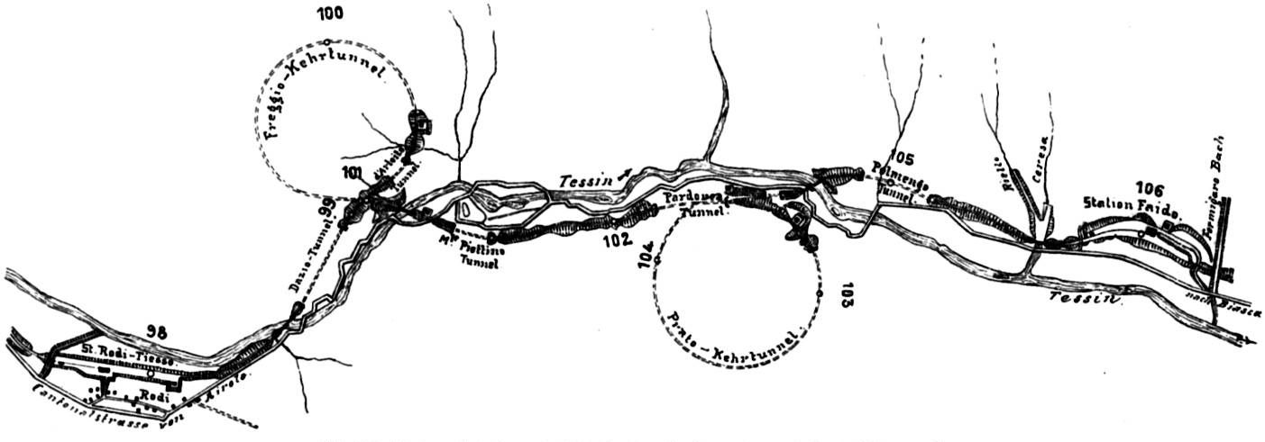 1870년대 초, 스위스 북부는 독일 및 프랑스와 연결되는 철도망을 갖추고 있었으나, 알프스를 넘어 남부나 이탈리아로 가는 노선은 없었다. 1869년 베른에서 열린 국제회의에서 고트하르트 고개 아래 터널을 통해 로이스강과 티치노강 계곡을 잇는 경로가 최적이라고 결정되었다. 이 경로는 13세기부터 순례자와 상인들이 이용하던 길이었다.[27][28]