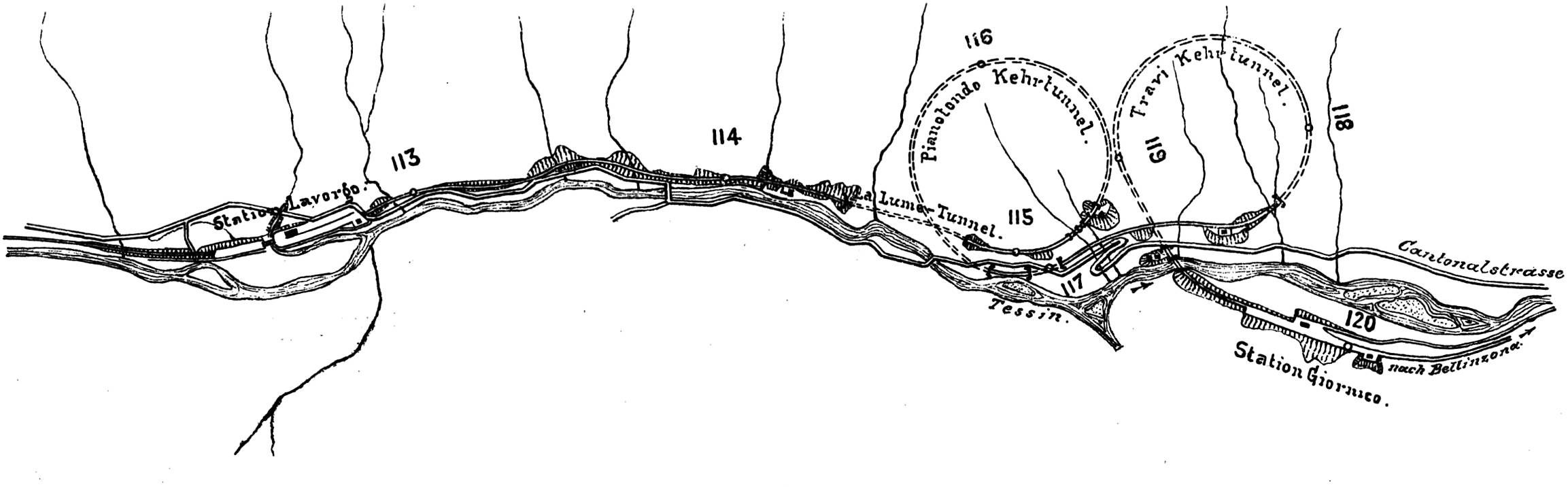 고트하르트 베이스 터널과 체네리 베이스 터널이 개통되었지만, 모든 철도 교통은 여전히 에르스트펠트 북쪽, 비아스카와 벨린초나 사이, 루가노 남쪽 구간의 기존 노선을 사용해야 한다. 기존 노선의 우회된 구간은 지역 여객 서비스, 일반적인 수송 능력 확보 및 우회 경로로 유지된다.[25][26]