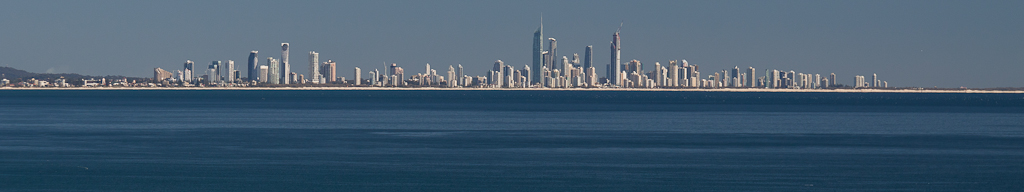 골드코스트 시의 최남단 마을인 쿨랑가타에는 포인트 댄저와 그 등대가 있다. 쿨랑가타는 뉴사우스웨일스주 국경 바로 건너편에 위치한 트위드 헤즈와 자매 도시 관계를 맺고 있다. 이곳은 퀸즐랜드 본토의 가장 동쪽 지점이다 (해안 섬인 노스 스트래드브룩 섬의 포인트 룩아웃이 약간 더 동쪽에 있다). 쿨랑가타에서 약 40km에 걸쳐 휴양 리조트와 서핑 해변이 메인 비치 교외 지역까지 북쪽으로 뻗어 있으며, 스트래드브룩 섬까지 더욱 이어진다. 사우스포트와 서퍼스 파라다이스 교외 지역은 골드코스트의 상업 중심지를 형성한다. 이 지역의 주요 강은 네랑 강이다. 해안 지대와 배후지 사이의 많은 땅은 한때 이 강에 의해 배수되는 습지였지만, 늪은 인공 수로 (260km 이상[48] 또는 베네치아 운하 길이의 9배 이상)와 고급 주택으로 덮인 인공 섬으로 바뀌었다.