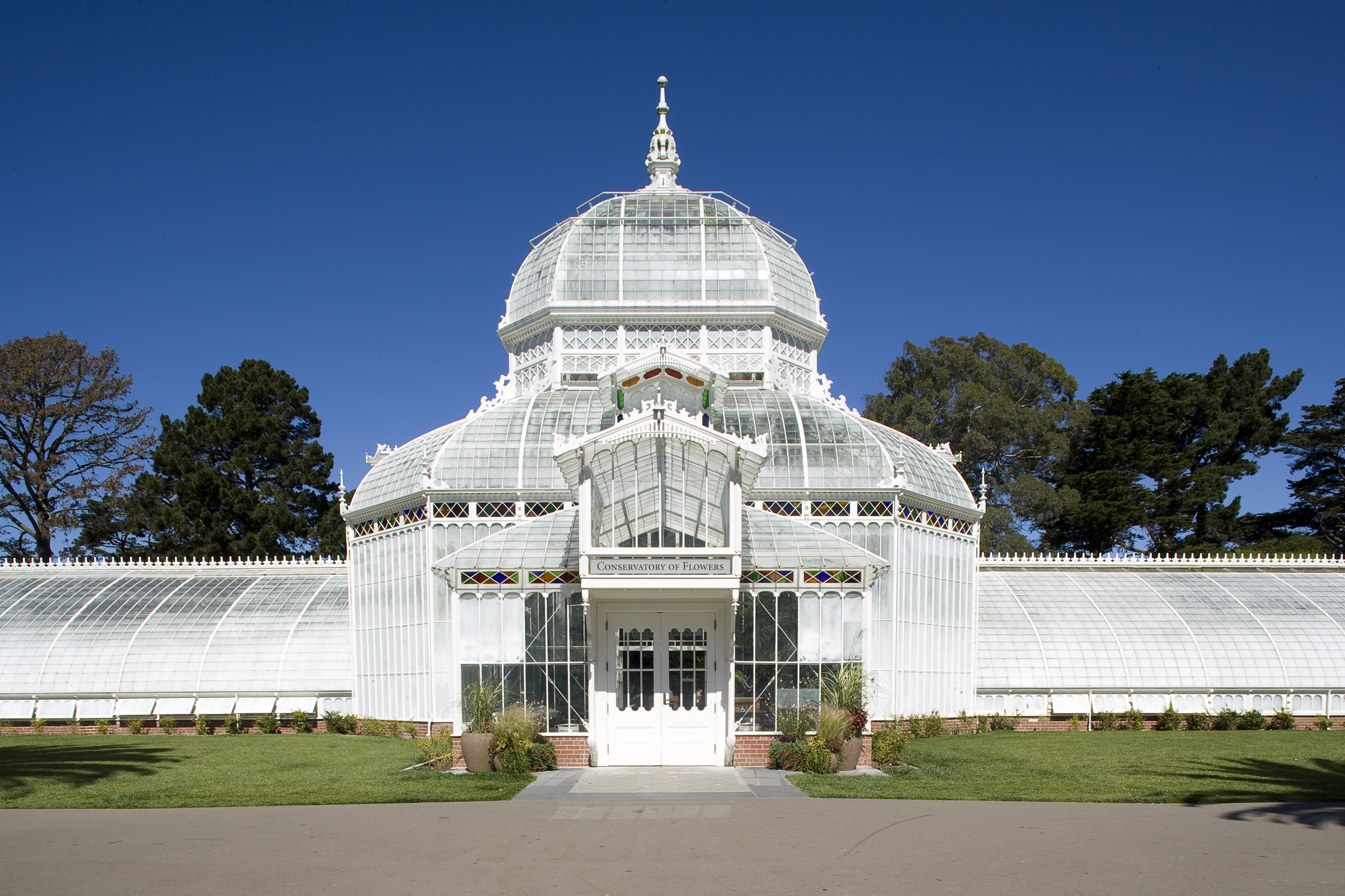 꽃 보존원은 1879년에 문을 열었으며 오늘날 골든게이트 공원에서 가장 오래된 건물이다.[44] 미국에서 가장 큰 온실 중 하나이며, 미국에 몇 안 되는 대규모 빅토리아 시대의 온실 중 하나이다.[45] 전통적인 나무와 유리창으로 지어진 온실은 1,700종의 열대, 희귀, 수생 식물을 보유하고 있다.[44][46] 윌리엄 해먼드 홀은 공원 설계에 온실 아이디어를 포함시켰고,[45] 샌프란시스코의 부유한 사업가 27명의 도움으로 실현되었다.[46]
