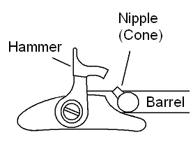 화기의 발달 과정에서 플린트락은 부싯돌이 강철을 쳐서 불꽃을 일으켜 화약을 점화하는 방식으로 작동했다. 이후 타격 감응형 풀민산염을 이용한 퍼커션 록(캡록) 방식이 등장하여, '코크' 대신 '해머'가 타악성 물질이 든 캡을 쳐서 주 추진 장약을 점화했다.[5]