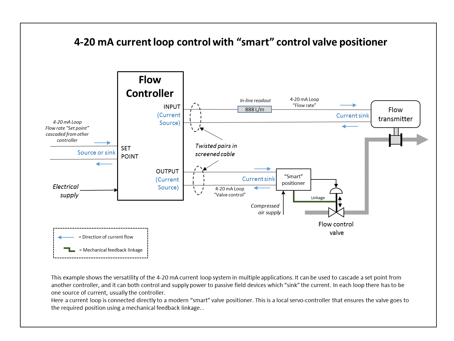 모든 산업 제어 시스템의 기본 구성 요소는 하나의 공정 변수를 제어하는 제어 루프이다. 첨부된 그림은 파이프의 유량을 PID 제어기로 제어하는 예시를 보여준다. 이는 밸브 위치를 정확하게 보장하기 위한 밸브 서보 제어기 형태의 계단식 루프에 의해 지원된다.