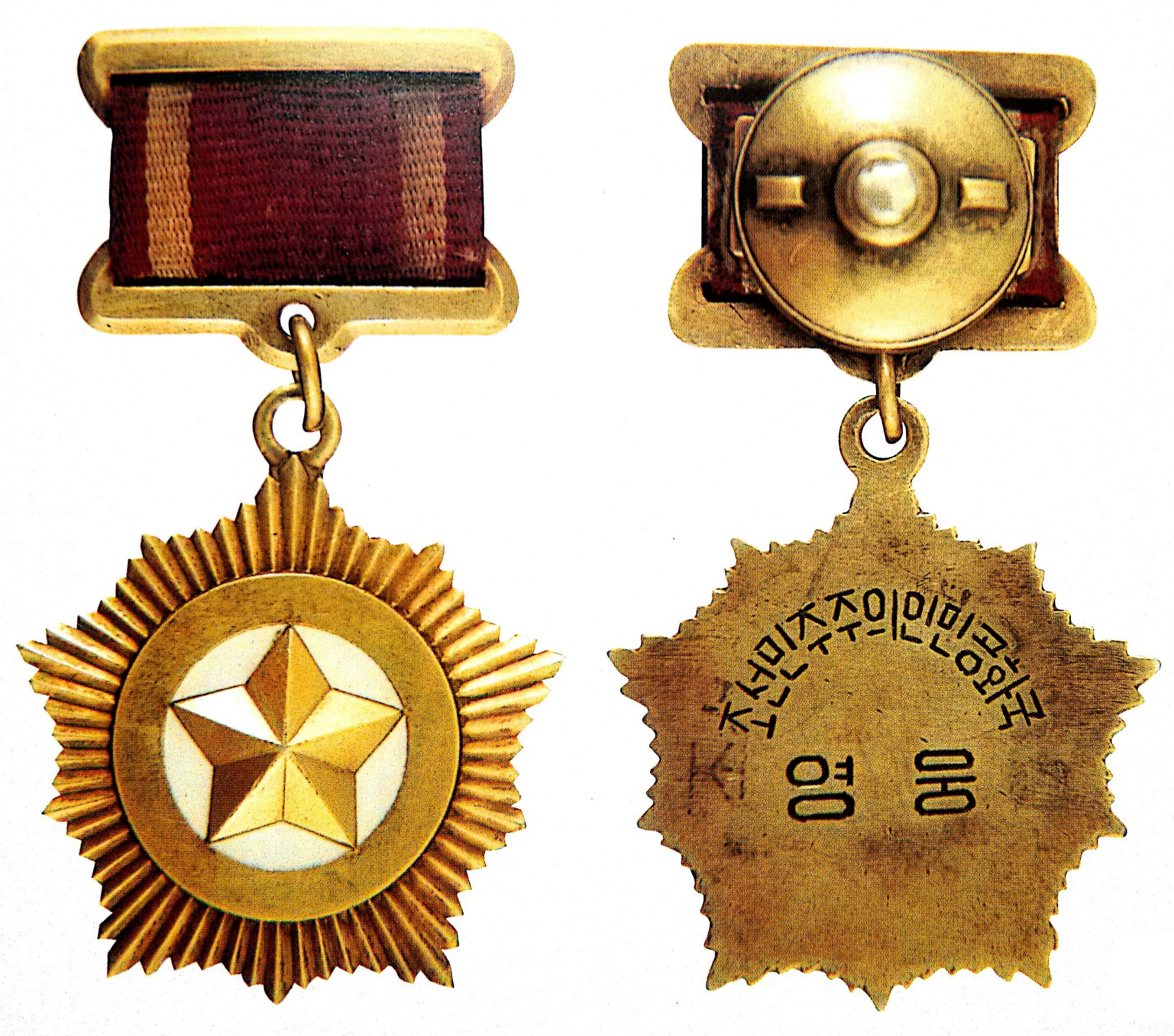 1960년대 - 현재 | 조선민주주의인민공화국 | 스털링 실버에 금 도금 | 스크류백(Screw-back) 혹은 핀 백(Pin back) |
