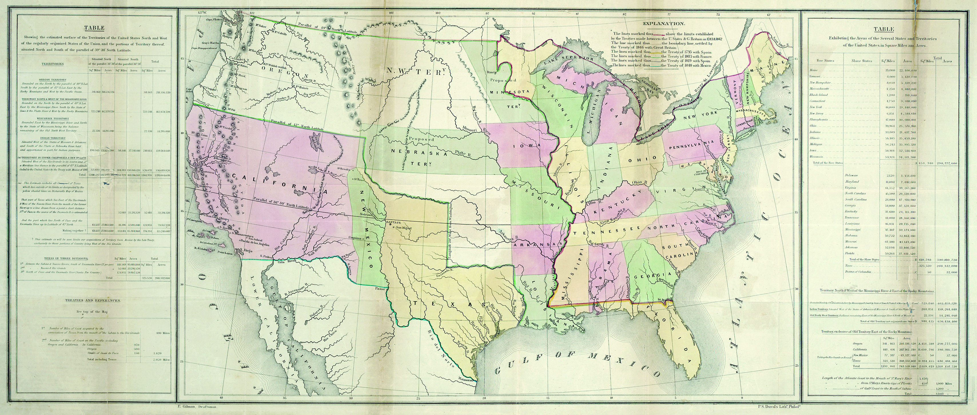 1845년 멕시코에서 독립한 텍사스 공화국이 멕시코의 반대에도 불구하고 미국에 자발적으로 합병한 텍사스 합병 사건이 일어나자, 이듬해 1846년 멕시코-미국 전쟁으로 이어졌다. 그러나 멕시코가 전쟁에 패배하면서 1848년 1월 멕시코가 평화 협정을 요청했고, 2월 2일 미국이 《과달루페 이달고 조약》에 서명함으로써 멕시코-미국 전쟁은 끝났다.[5]이 조약으로 멕시코는 캘리포니아, 애리조나, 네바다, 유타, 콜로라도, 뉴멕시코, 와이오밍 등 국토의 절반 가량을 미국에 넘겨주었다. 반면 미국은 전시 멕시코 영토에 끼친 손해 보상금 1500만달러를 지불하기로 하였다.