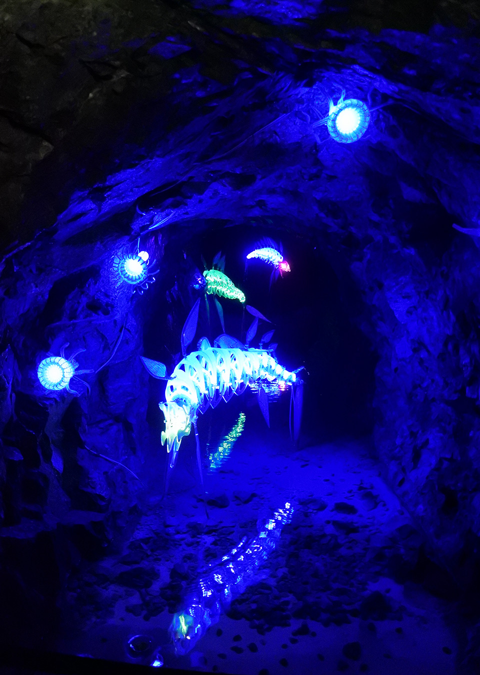 광명동굴은 수족관, 조각, 빛 쇼, 어린이 놀이 시설 등 엔터테인먼트 시설을 갖추고 있다.[3][1]