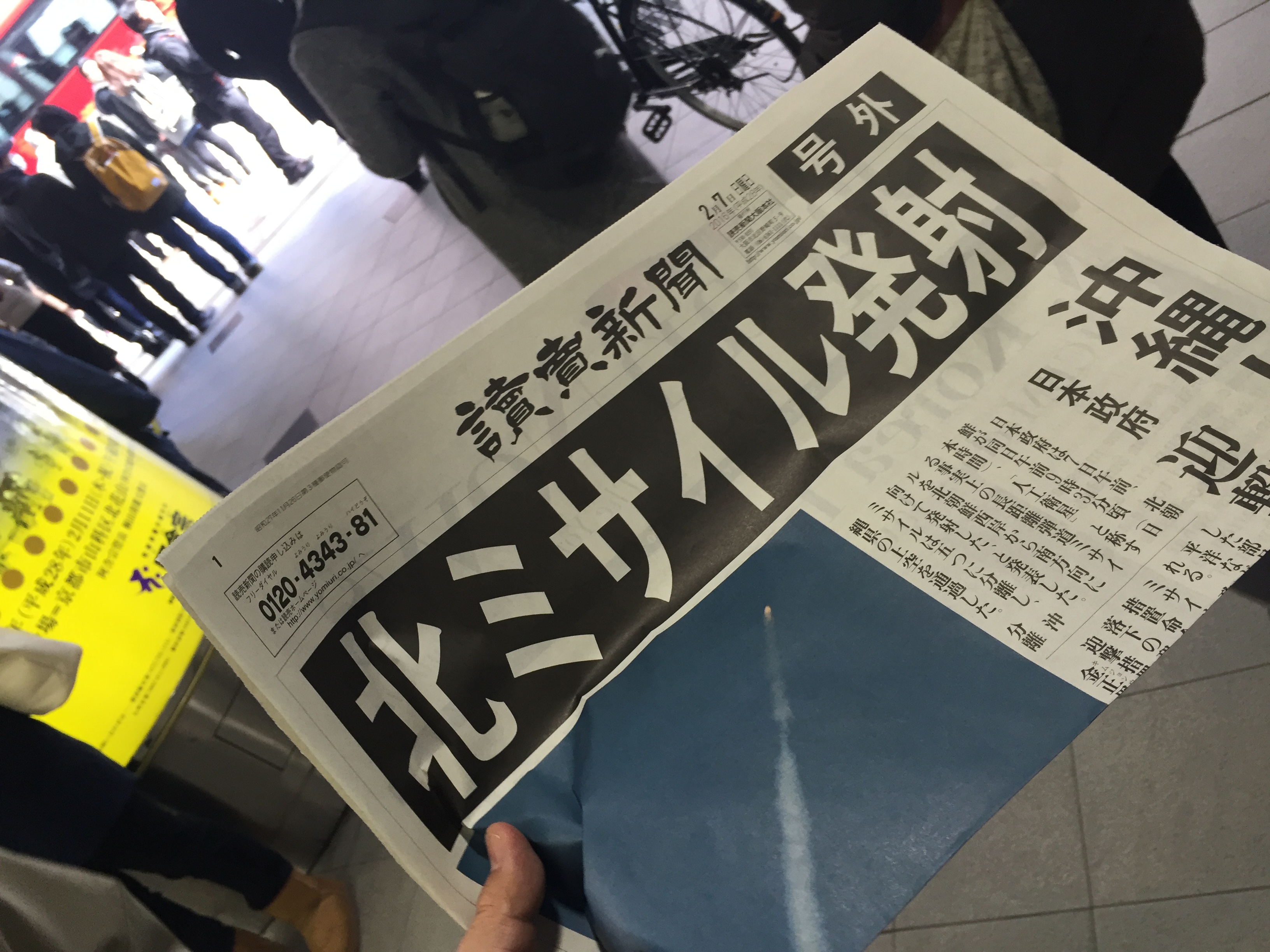 ''요미우리 신문'' 신문 호외, 일본 독자들에게 발사 소식을 알림