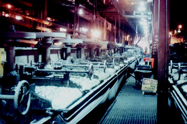 이러한 광산에서는 웨더릴 자력 선별기(John Price Wetherill, 1844–1906이 발명)[1]라는 장치를 사용했다. 이 기계에서 소성된 후의 생광석은 공급 벨트에 올려져 이동했는데, 이 벨트는 두 쌍의 전자기 코일 아래를 통과했으며, 이 코일 아래에는 공급 벨트와 직각으로 다른 벨트들이 작동했다. 첫 번째 쌍의 전자기 코일은 약하게 자화되어 존재하는 철광석을 끌어냈다. 두 번째 쌍은 강하게 자화되어 약자성을 띠는 텅스텐산철을 끌어당겼다. 이 기계는 하루에 약 9071.85kg의 광석을 처리할 수 있었다. 이처럼 자석의 도움으로 혼합물에서 자성 물질을 비자성 물질로부터 분리하는 과정을 자력 선별이라고 한다.