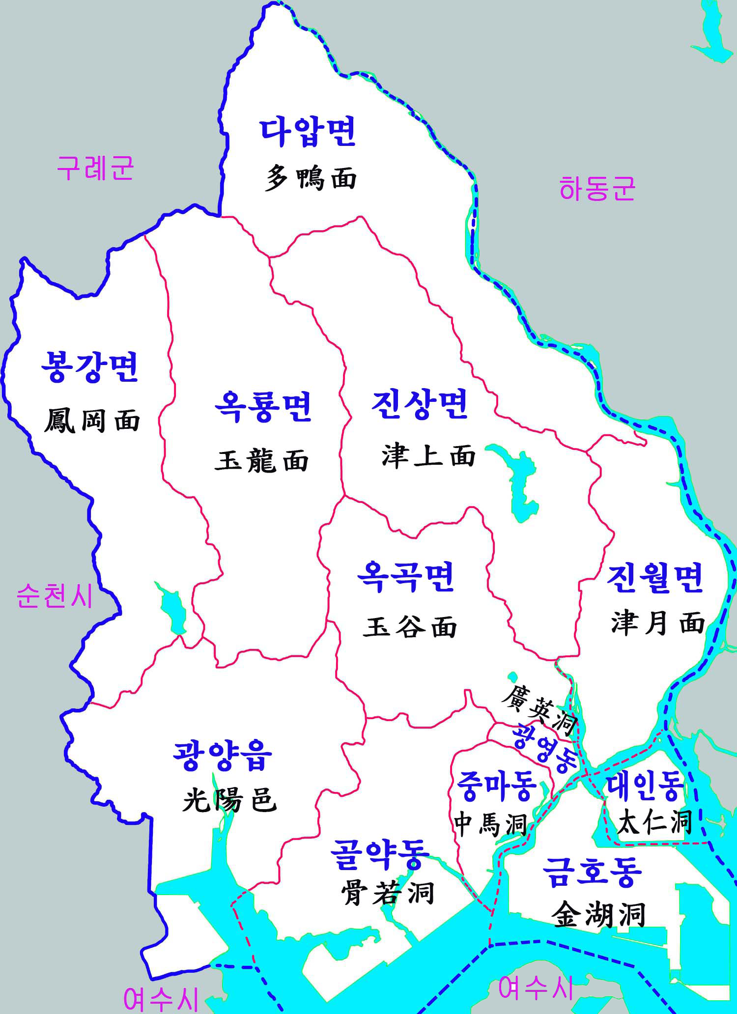 한국의 지방 행정 구역 | 대한민국 전라남도 광양시 |
