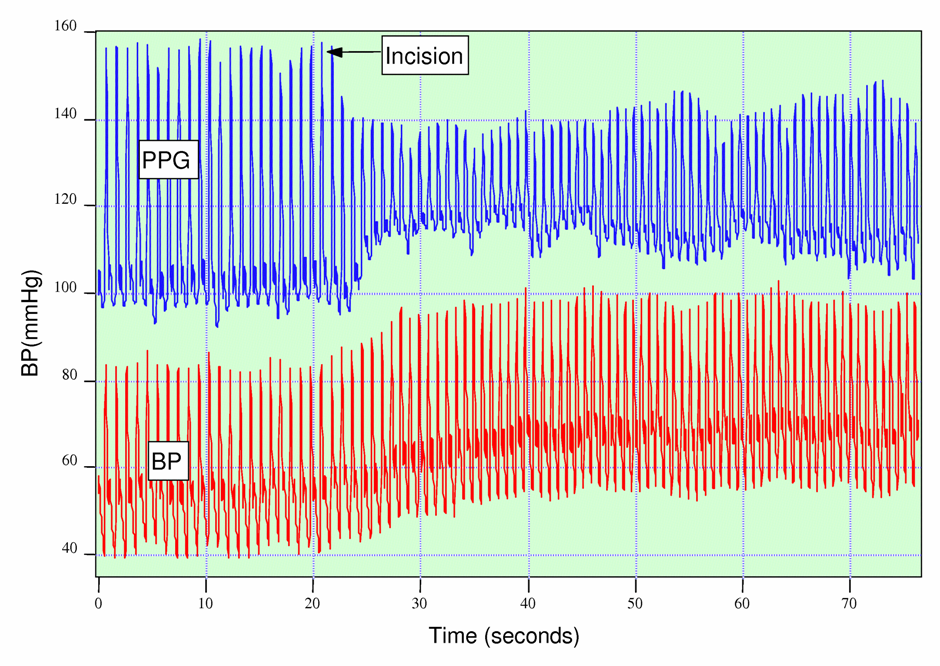 마취과 의사는 환자가 수술에 충분히 마취되었는지 주관적으로 판단해야 하는 경우가 많다. 환자가 충분히 마취되지 않은 경우, 절개에 대한 교감 신경계 반응은 광혈류측정(PPG)의 진폭에 즉각적인 변화를 일으킬 수 있다.[16]