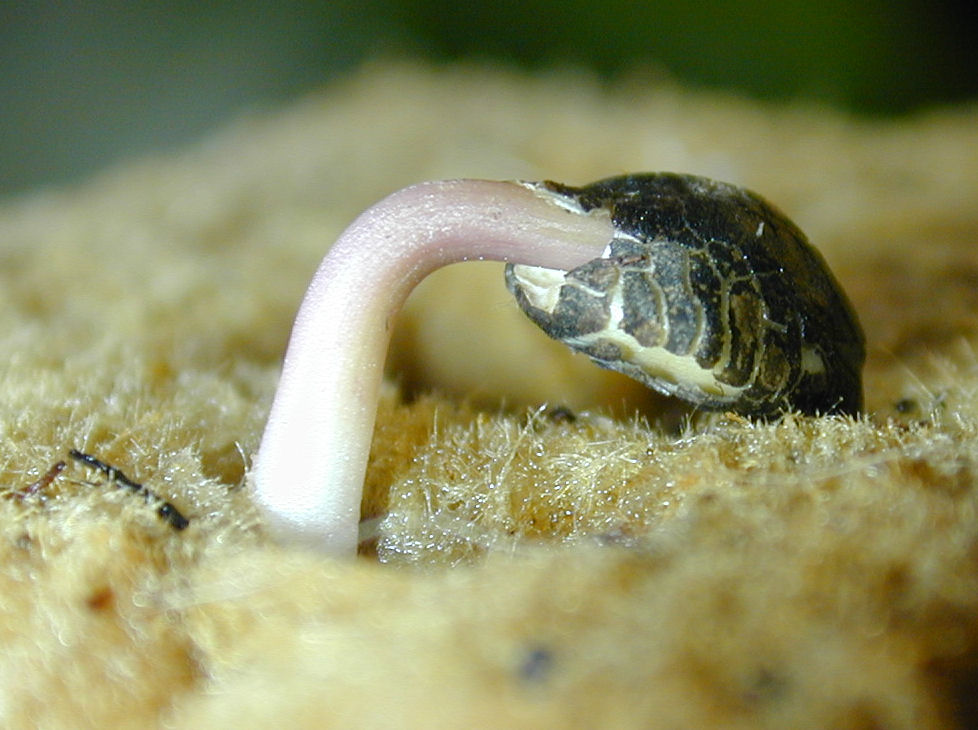 땅에서 나오는 쌍자엽 묘목은 어두운 조건에 대한 반응으로 정단 갈고리(이 경우 하배축)를 나타낸다.