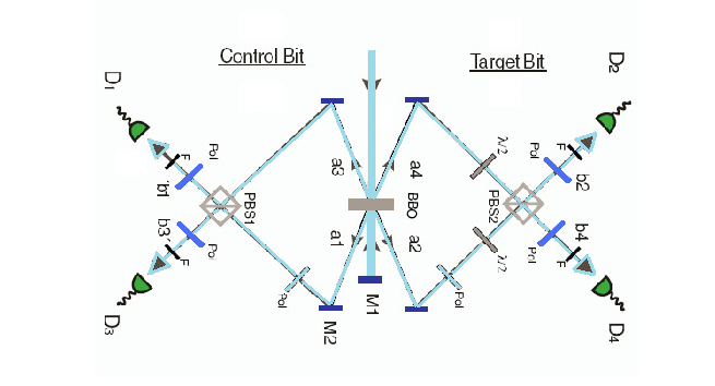 가장 간단한 것은 부분 집합 합 문제이다.[14] 4개의 숫자 {''a1, a2, a3, a4''}를 사용하여 인스턴스를 해결하는 광학 장치는 아래와 같다.