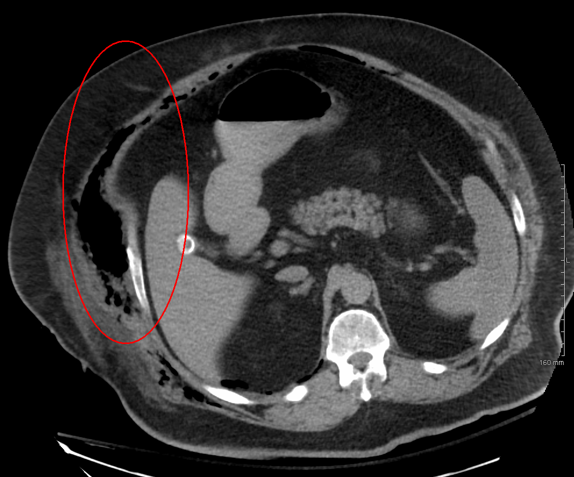 괴사성 변화를 시사하는 후기 징후는 사례의 절반 미만에서만 나타나며, 다음과 같다.