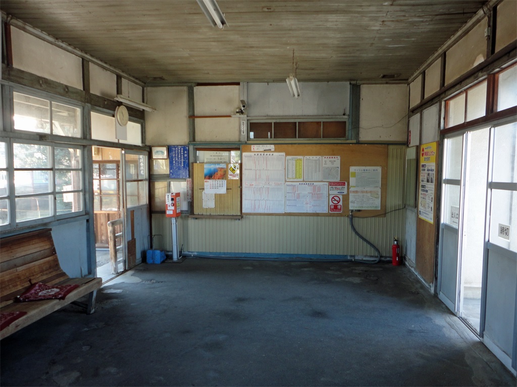 단선 승강장 1면 1선의 지상역이다. 인접한 신우오즈역 및 덴테츠 이시다역이 열차 교환이 가능한 역으로 개업했기 때문이다. 다만, 장래 2면 2선의 열차 교환이 가능하도록 산측에 부지가 확보되어 있다.[2] 목조 역사를 갖추고 있다.