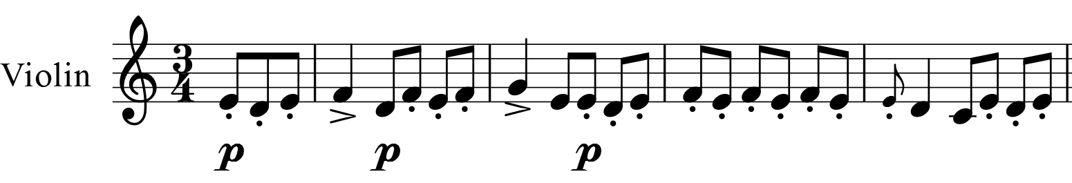 매우 빠른 피날레이지만, 곡의 서두에서 바이올린 연주자가 조현이 잘못된 것을 깨닫고 조현을 다시 하는 장면이 삽입되어 있다. 여기서는 바이올린의 G선의 개방현(G음)을 F음으로 하여 시작(스코르다투라)하여, 포르타멘토하면서 G음으로 조현을 다시 하고 연주를 재개한다.[14][15]